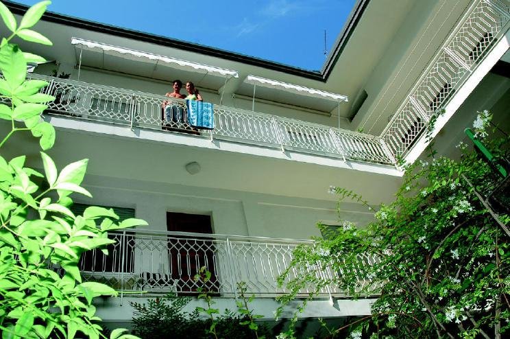 Residence of 12 apartments with 2 apartments per floor (without elevator) located in a convenient central location and 150 mt. from the beach; equipped with parking spaces (one car behind the other) and air conditioning.