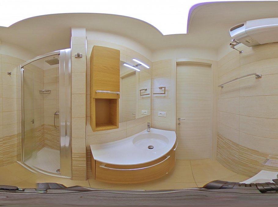 Three-room-apartment consisting of living/dining room with cooking area and sofa, tv and microwave, double- bedded-room, twin-bedded-room, shower box/washbasin/wc and a private terrace furnished with gazebo, table and chairs. Air conditioning, wi-fi and final cleaning are included in the price. In the rental rules of the agency are mentioned all the above written service’s ways. Parking place size: 5,00x2,35x2,35