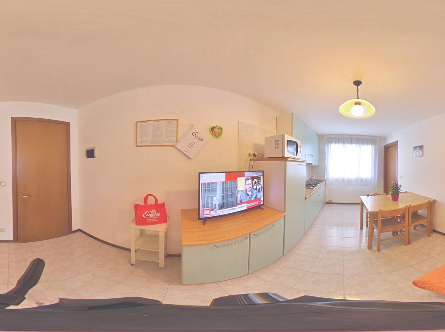 Pleasant apartment consisting of living/dining room with double sofa bed and kitchenette, tv and microwave, one three bedded room (one double and one single bed), bathroom with shower/bidet/wc and a spacious funished terrace. Air conditioning, wi-fi and final cleaning are included in the price. In the rental rules of the agency are mentioned all the above written service’s ways. Parking place size: 4,55 x 2,15