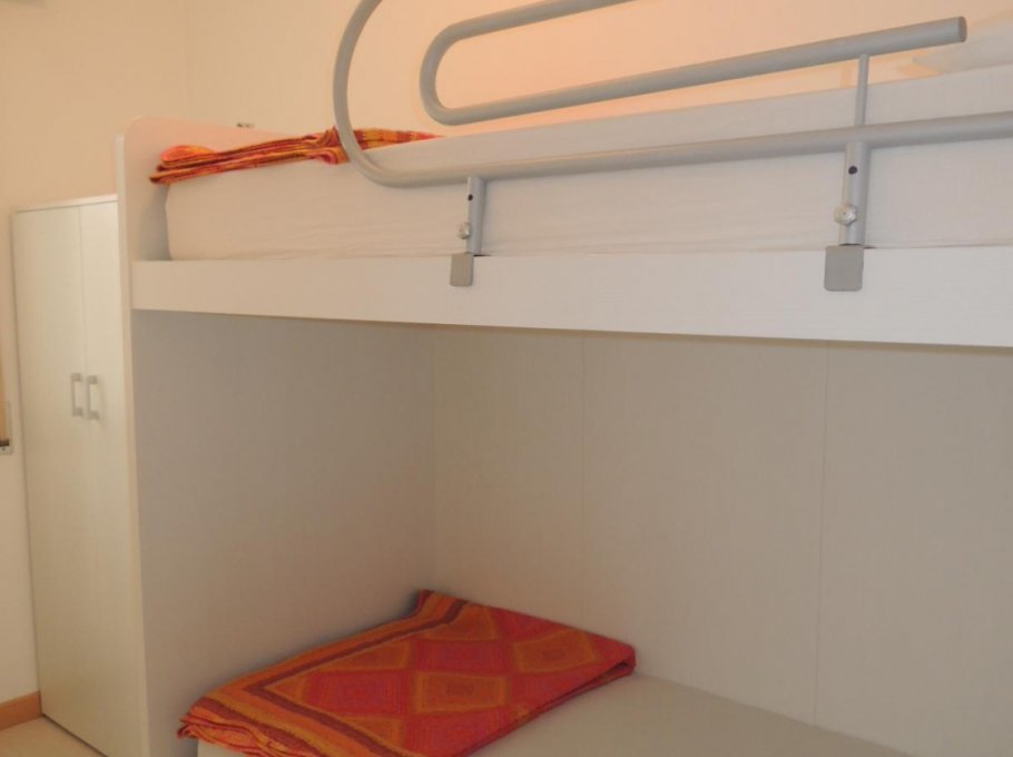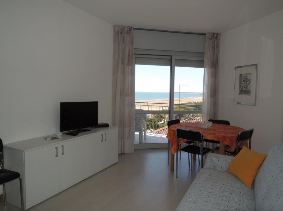 Bright and new renewed apartment on the 7th floor with elevator, with balcony with beautiful view on the sea on the south-west side; it has composed by a double bedroom, 1 bedroom with bunk bed, kitchen/living-room with sofa-bed (one and half place), bathroom with box shower and window. It has also air conditioned (on request for € 35,00 the week), washing machine and TV.