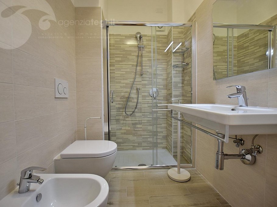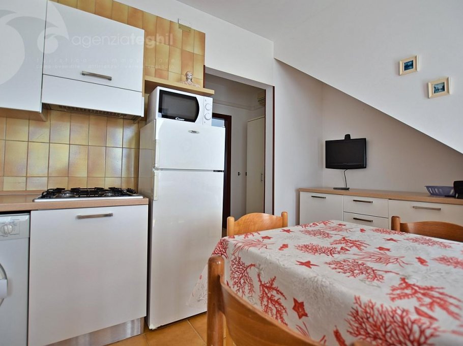 Type C: 4 persons - Apartment on the 1st floor (no elevator) consists of a double bedroom with a small balcony, a room with bunk bed, bathroom with shower box, living room with television (Italian channels only), kitchenette with refrigerator 240 lt (separated freezer) and washing machine. The apartment is also equipped with air conditioning and private parking 300 meters away.