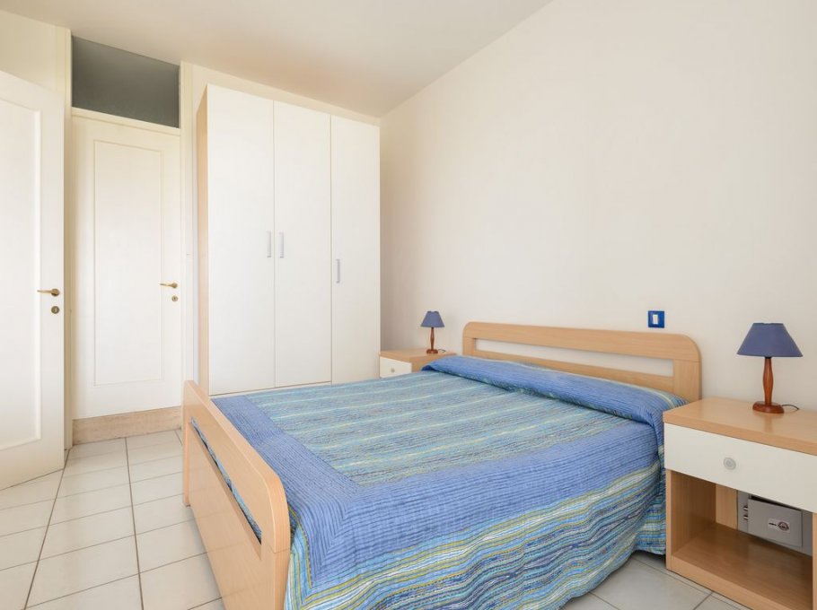 Type B. The apartment is located on the 7th floor. Living room with kitchenette, large fridge with freezer and double sofa bed, double bedroom, bathroom with enclosed shower (entrance from the bedroom), equipped balcony with lateral sea view and view on the lagoon. Max 4 pax.