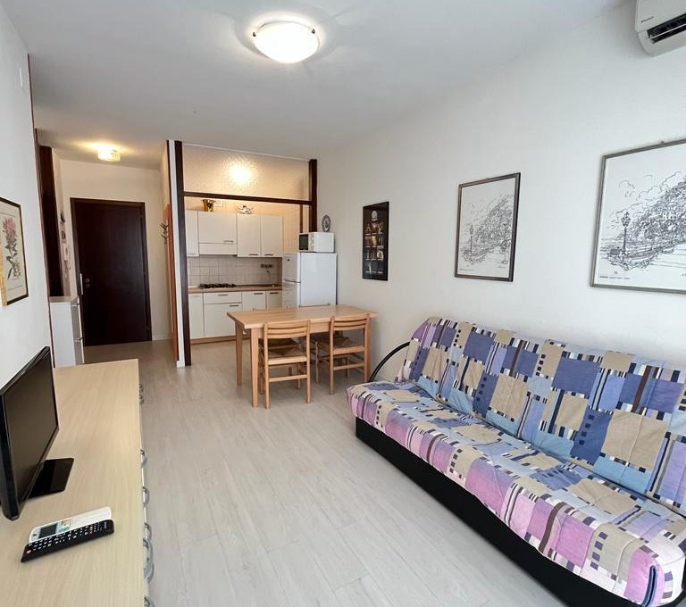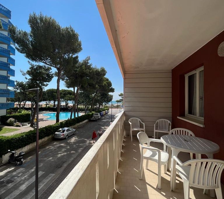 The apartment is at Luna Residence which is located at the beach promenade, near to the center of Lignano Sabbiadoro. On the ground floor of the residence are several shops, bars and restaurant. The apartment is on the 1° floor and is composed with 1 sleepingroom with 3 beds, 1 livingroom with double sleeping-couch, kitchen,renovated bathroom with showerbox, balcony with side seaview and private-parking.It’s renovated with TV, microwave, air conditioning and waschingmachine.