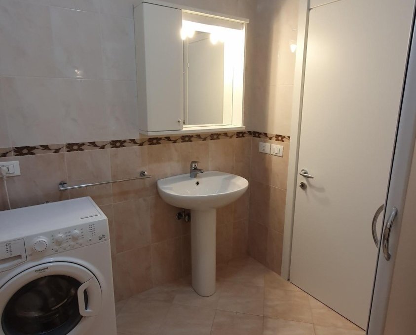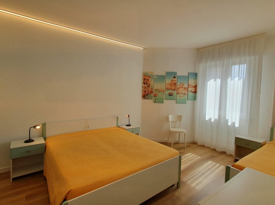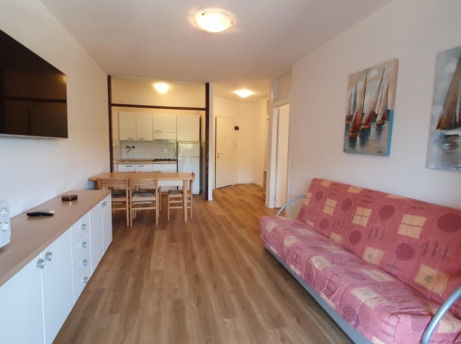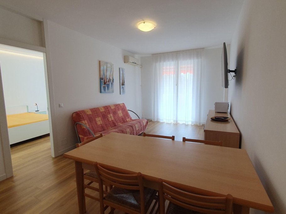 The apartment is at Luna Residence which is located at the beach promenade, near to the center of Lignano Sabbiadoro. On the ground floor of the residence are several shops, bars and restaurant. The apartment is on 3° floor. The apartment is composed with 1 sleepingroom with 3 beds, 1 livingroom with double sleeping-couch, kitchen,renovated bathroom with showerbox and waschingmaschine, balcony with side seaview and private-parking. It’s renovated with TV, microwave and air conditioning.