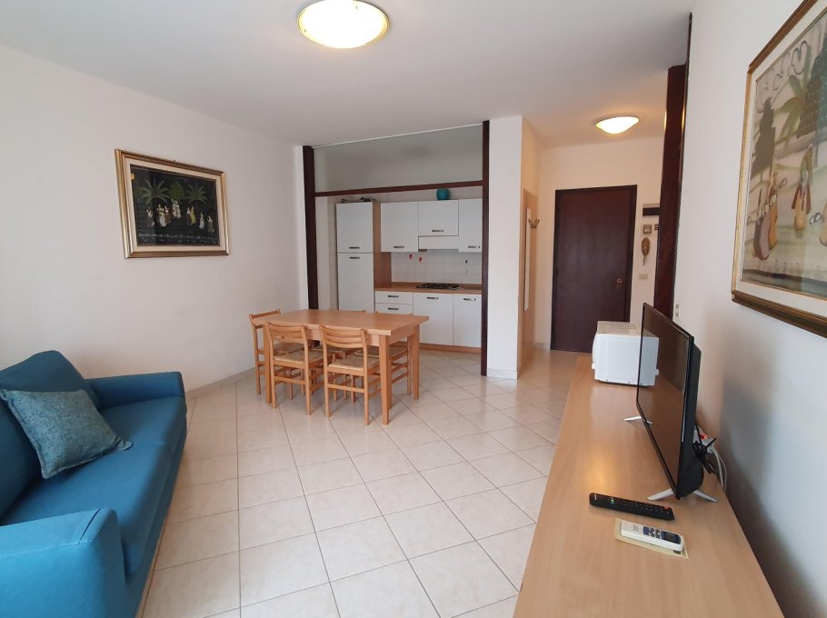 The apartment is at Luna Residence which is located at the beach promenade, near to the center of Lignano Sabbiadoro. On the ground floor of the residence are several shops, bars and restaurant. The apartment is on 4° floor. The apartment is composed with 1 sleepingroom with 3 beds, 1 livingroom with double sleeping-couch, kitchen, bathroom renovated with showerbox, balcony with side seaview and private-parking. It’s renovated with TV, air conditioning and microwave.