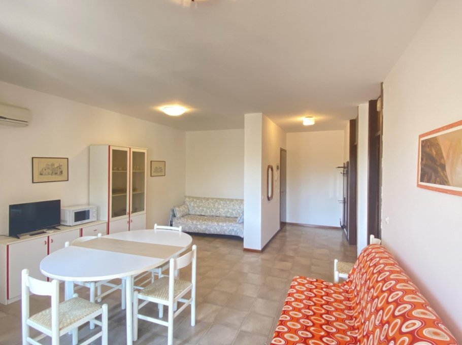 The apartment is at Luna Residence which is located at the beach promenade, near to the center of Lignano Sabbiadoro. On the ground floor of the residence are several shops, bars and restaurant. The apartment is on the 4° floor and is composed with 1 sleepingroom with doublebed, 1 sleepingroom with 3 beds, 1 livingroom with double sleeping-couch, kitchen, bathroom with showerbox, Tv. waschingmachine, air conditioning,microwave, balcony with side seaview and private-parking.