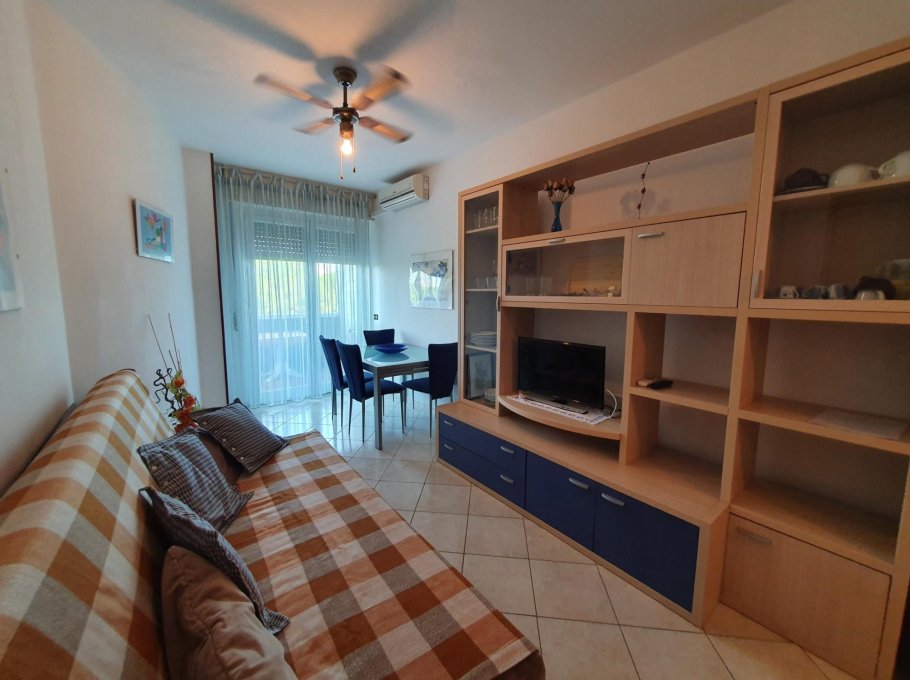 The apartment is at Luna Residence which is located at the beach promenade, near to the center of Lignano Sabbiadoro. On the ground floor of the residence are several shops, bars and restaurant. The apartment is on the 5° floor and is composed with 1 sleepingroom with doublebed and castlebed, 1 livingroom with double sleeping-couch, kitchen, bathroom with showerbox, balcony with side seaview and private-parking. It’s new renovated with TV, washingmaschine and air conditioning.