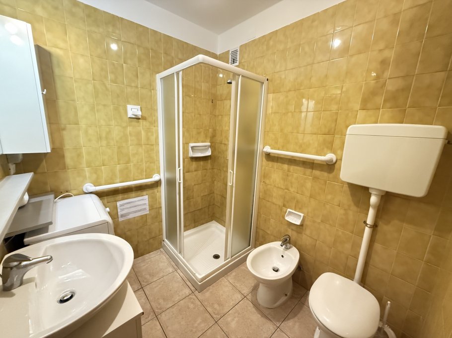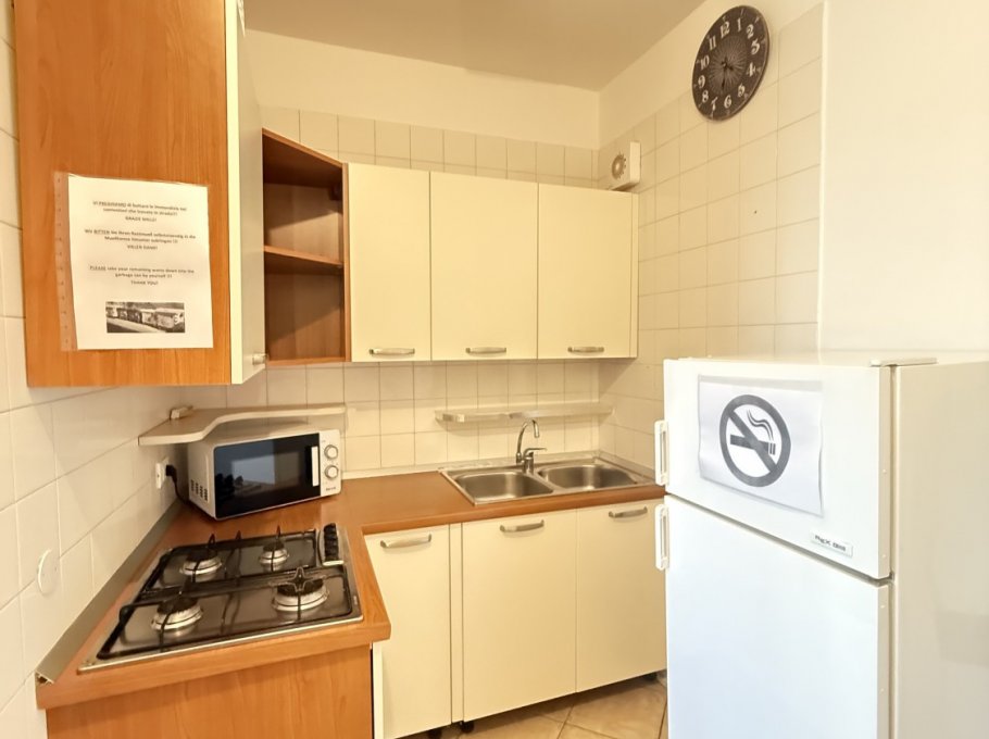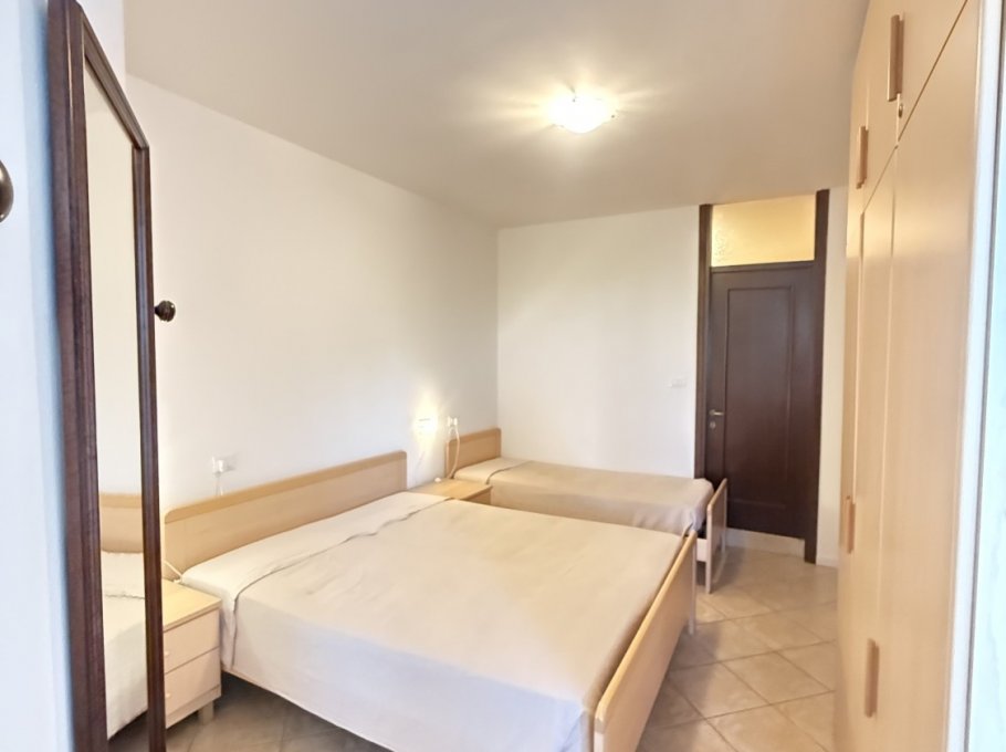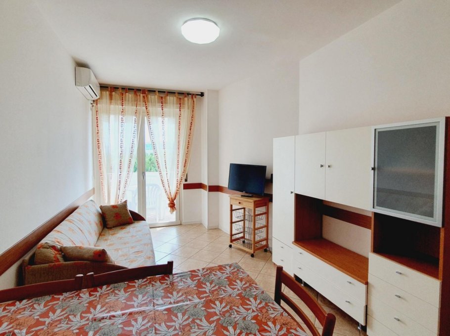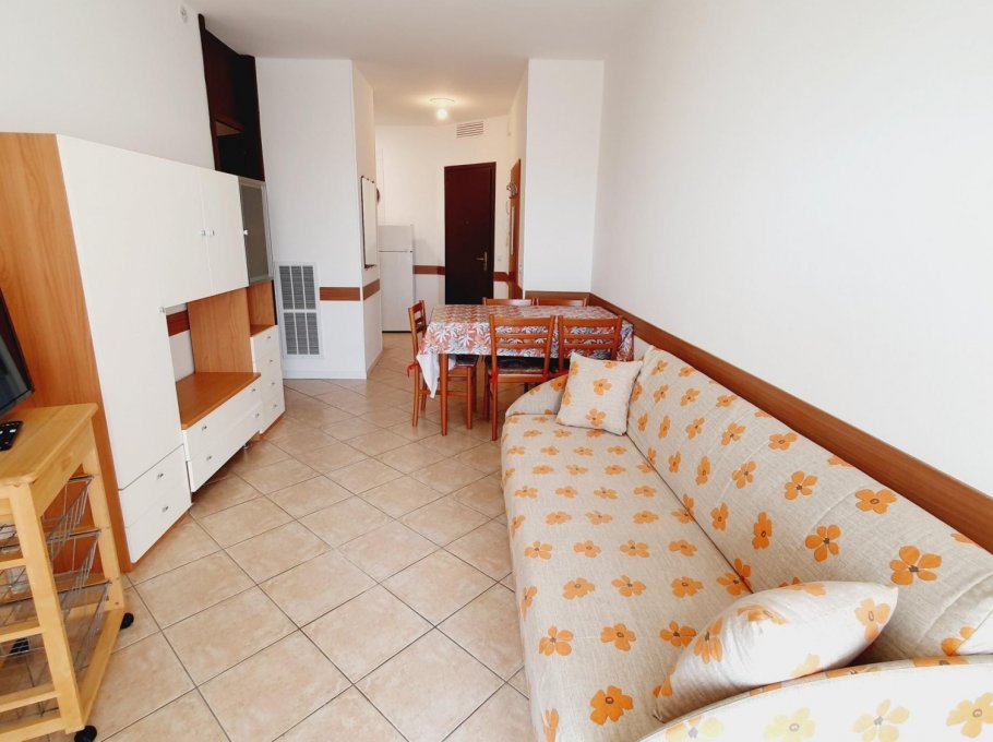 The apartment is at Luna Residence which is located at the beach promenade, near to the center of Lignano Sabbiadoro. On the ground floor of the residence are several shops, bars and restaurant. The apartment is on the 5° floor and is composed with 1 sleepingroom with doublebed and singlebed, 1 livingroom with double sleeping-couch, kitchen, bathroom with showerbox, balcony with side seaview and private-parking. It’s new renovated with TV, air conditioning,waschingmachine and microwave.