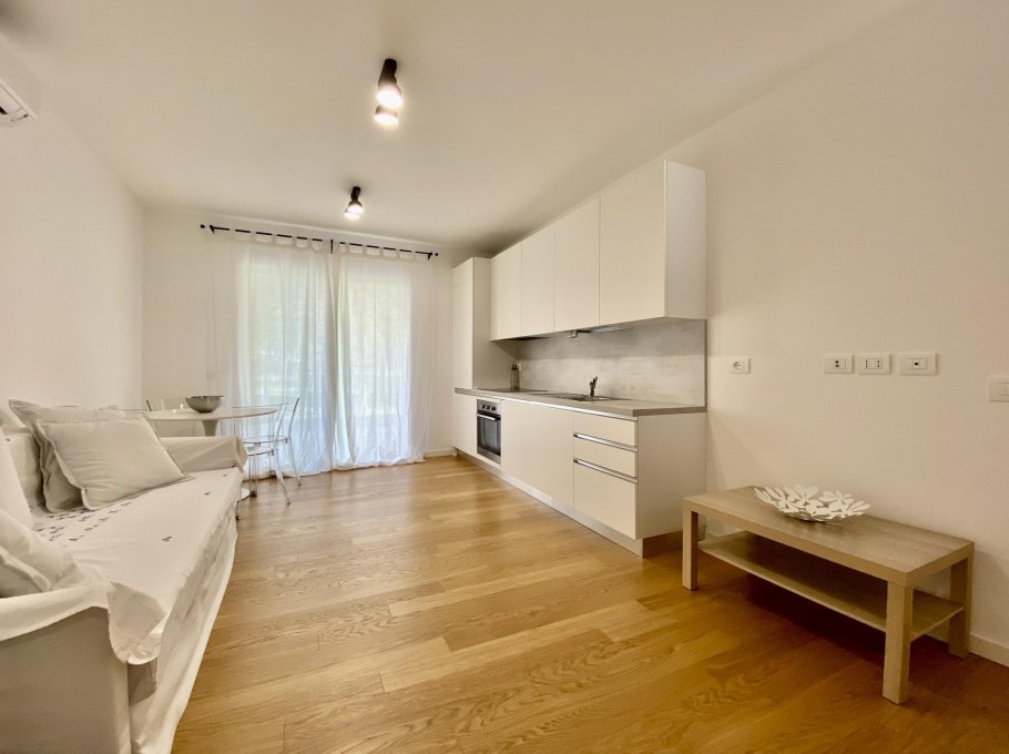 Elegant residence of recent construction consisting of apartments on the ground floor with garden or on the first floor with large terrace. Located in front of the Lagoon in an enchanting position, surrounded by greenery and quiet. Each apartment has a reserved parking space.