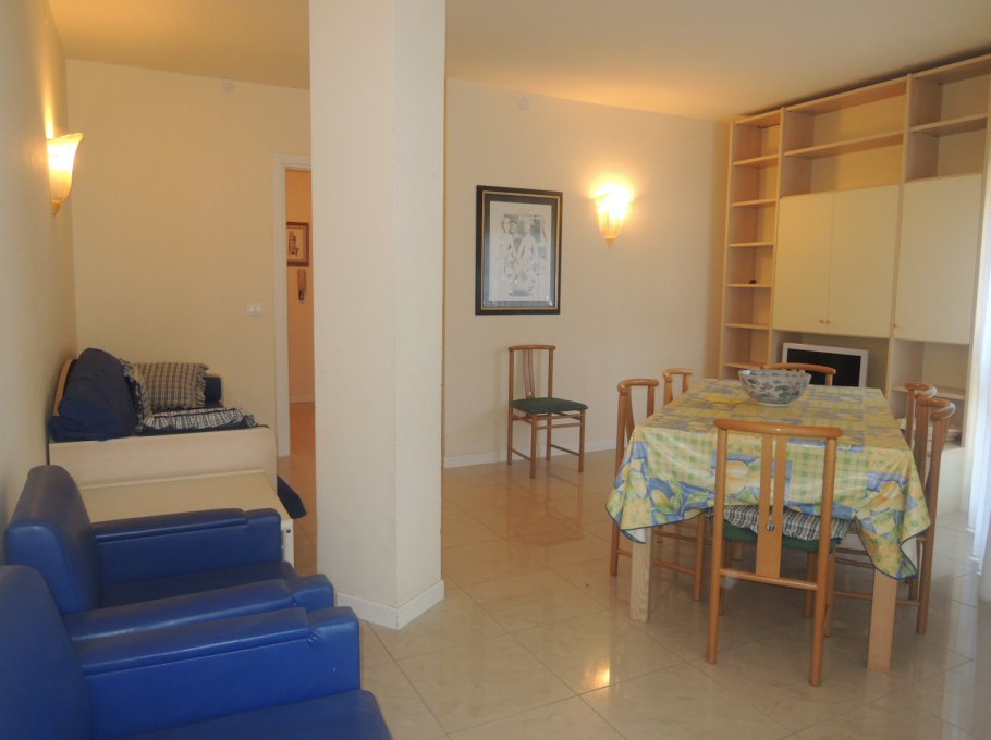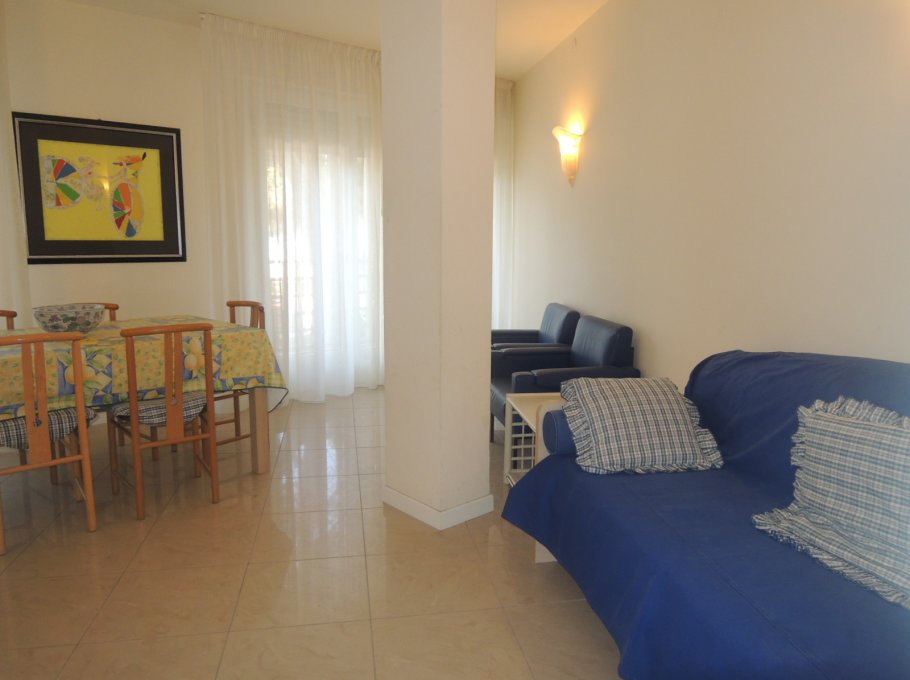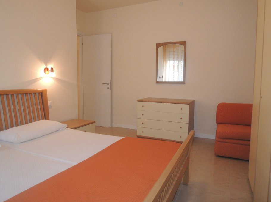 Completely renovated and very spacious apartment on the 1st floor, composed by three bedrooms (one of them with doublebed, one with two single beds and one with singlebed), two bathrooms both with boxshower, kitchen, large living room with single sofa bed, two balconies (one of them directly on the sea side, the other one on the East side) and parking space. There is also air conditioning (in the living area and in the sleeping area) on request (€ 40.00 per week)
