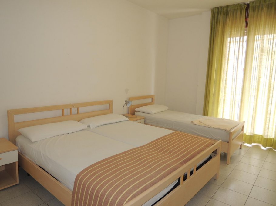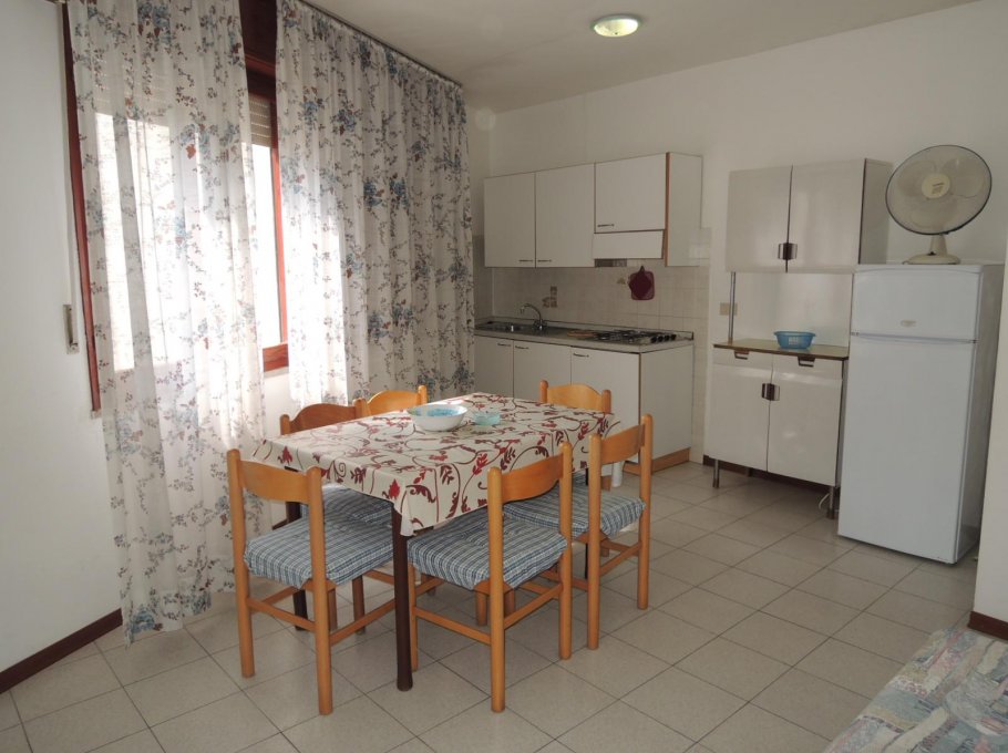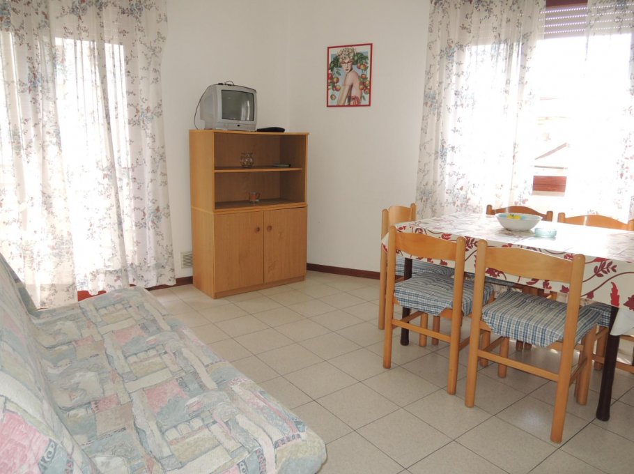 Roomy apartment on the 2nd floor, composed of one bedroom with a double bed and a single bed, kitchen/livingroom with a sofa-bed, bathroom with box shower and window, balcony with a small view on the sea and a parking place inside of the building; with air condition (on request to € 35,00 for a week)