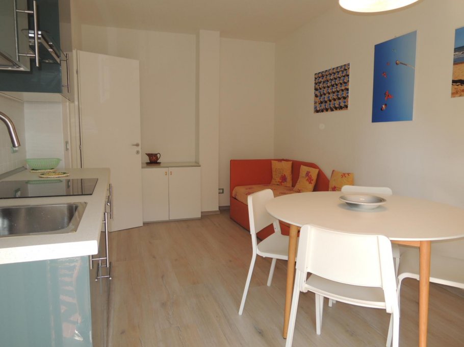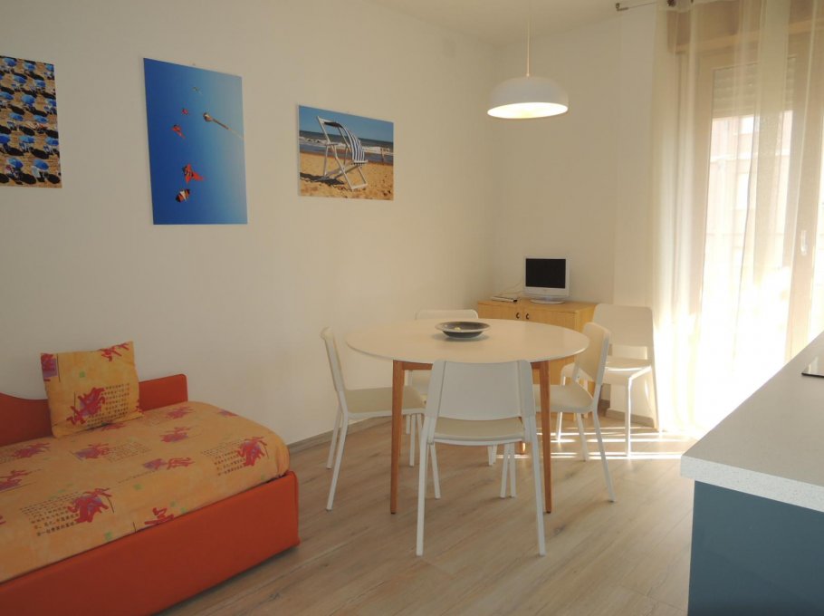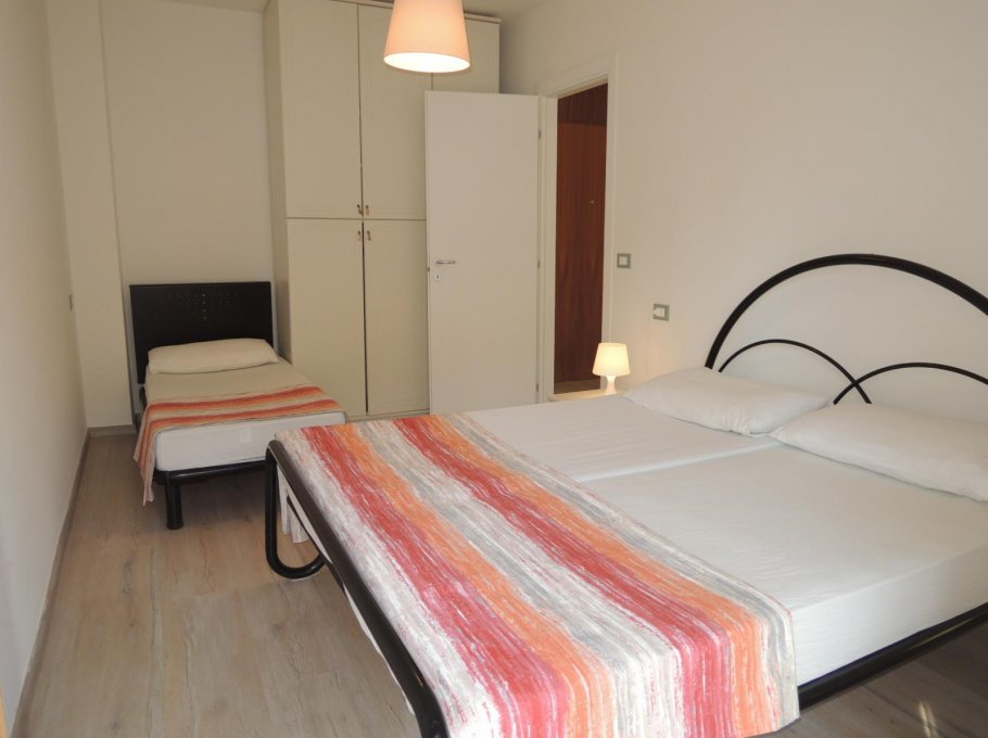 Apartment on the 3rd floor, completely renewed (since 2018), composed by one bedroom with a double bed and single bed, kitchen/livingroom with a sofa-bed, bathroom with box shower and window, a balcony with view on the sea (from the side), air condition (on request € 30,00/week), parking place and tv.
