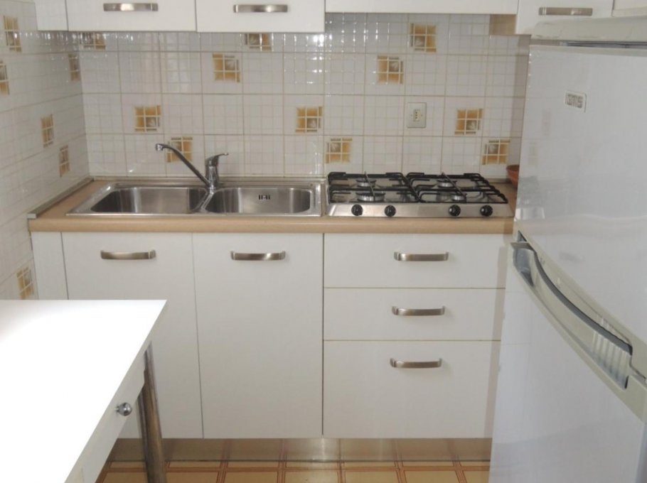 Spacious apartment on the 2nd floor, consisting of a double bedroom, living room with kitchenette and sofa bed for two people, bathroom with window, terrace and garage. With air conditioning on request (€30.00 per week) and washing machine included in the price
