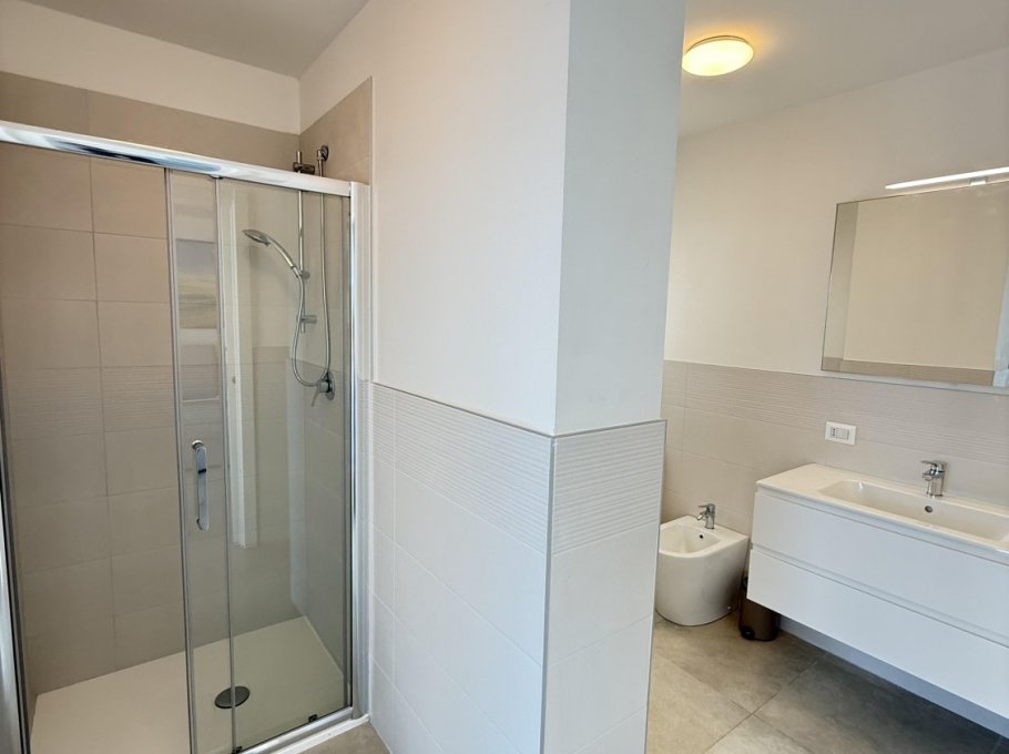 The apartment is located in the Millefiori residence, a 9-storey building with private parking. It's located just 200 meters from the sea. The apartment is located on the 2nd floor and consists of a bedroom with a double bed, a bedroom with 2 single beds, living room with sofa bed, kitchenette with dishwasher and induction hob, one bathrooms with shower cabin and a large terrace. New apartment with air conditioning, washing machine and TV.