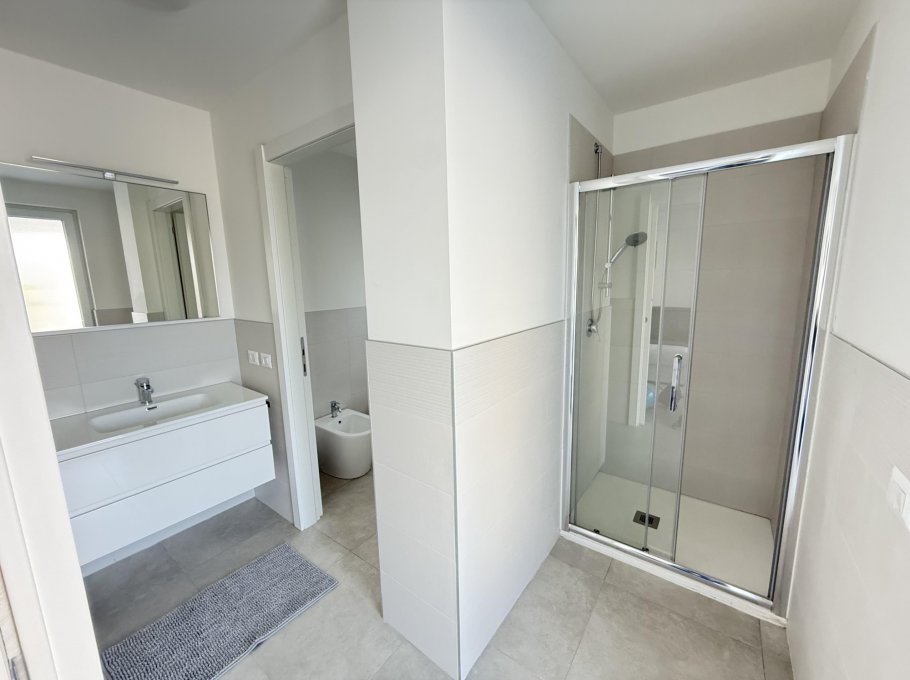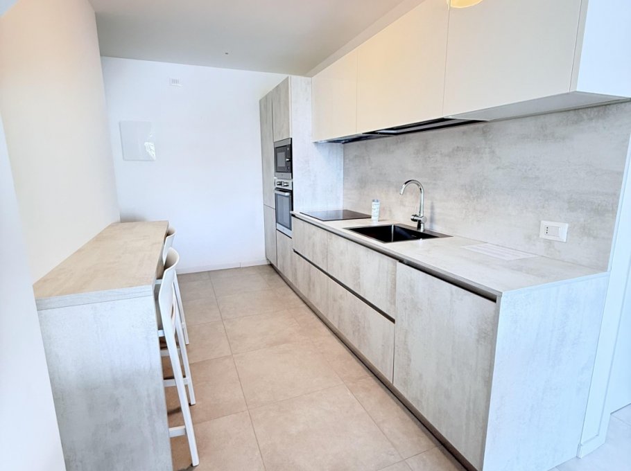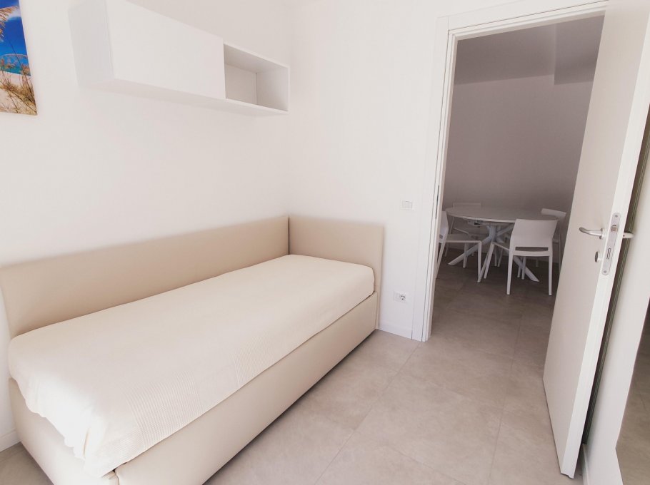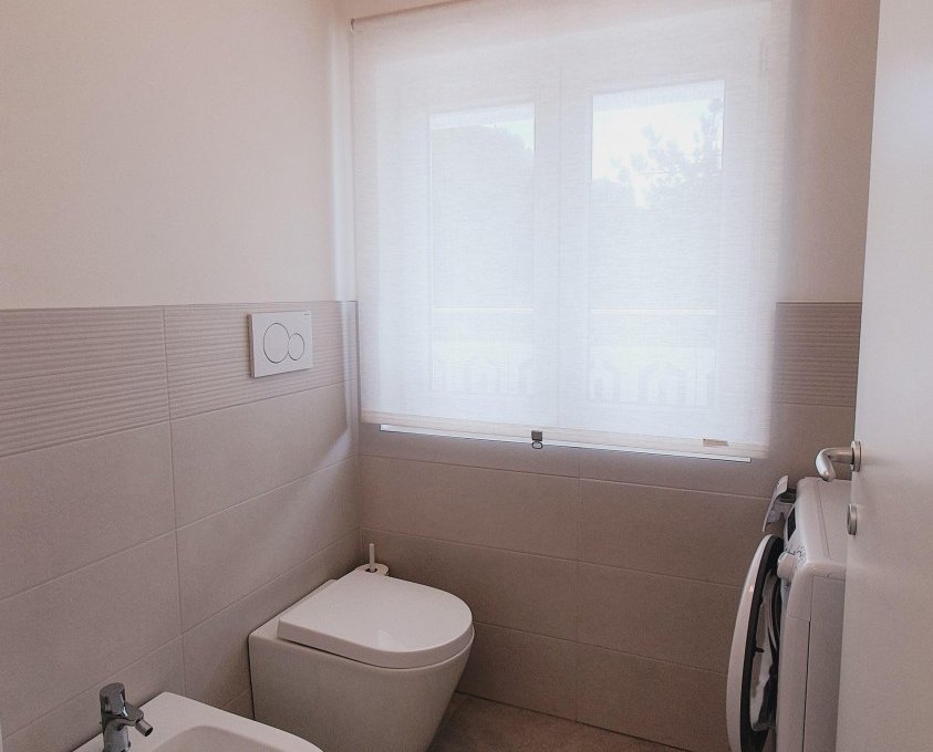 The apartment is located in the Millefiori residence, a 9-storey building with private parking. It's located just 200 meters from the sea. The apartment is located on the 2nd floor and consists of a bedroom with a double bed, a bedroom with 2 single beds, living room with sofa bed, kitchenette with dishwasher and induction hob, one bathrooms with shower cabin and a large terrace. New apartment with air conditioning, washing machine and TV.