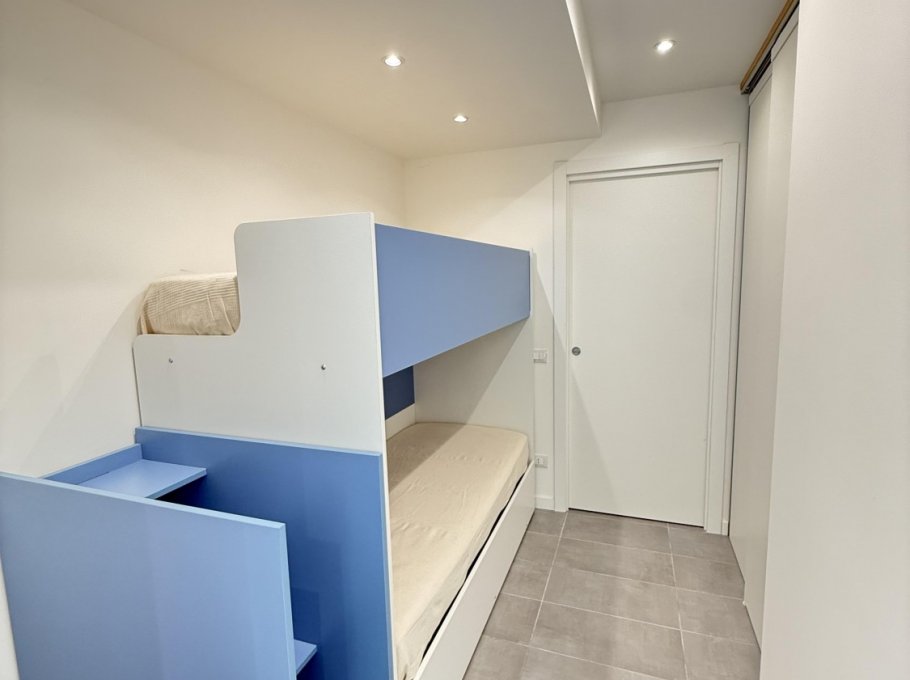 The apartment is located in the Millefiori residence, a 9-floors building with private parking. It is located just 200 meters from the sea. The apartment is located on the 2nd floor and consists of a bedroom with a double bed, a bedroom with 1 bunk bed, living room with sofa bed, kitchenette with dishwasher and induction hob, two bathrooms with shower, large equipped terrace overlooking the pine forest. New apartment with air conditioning, TV, microwave and washing machine.