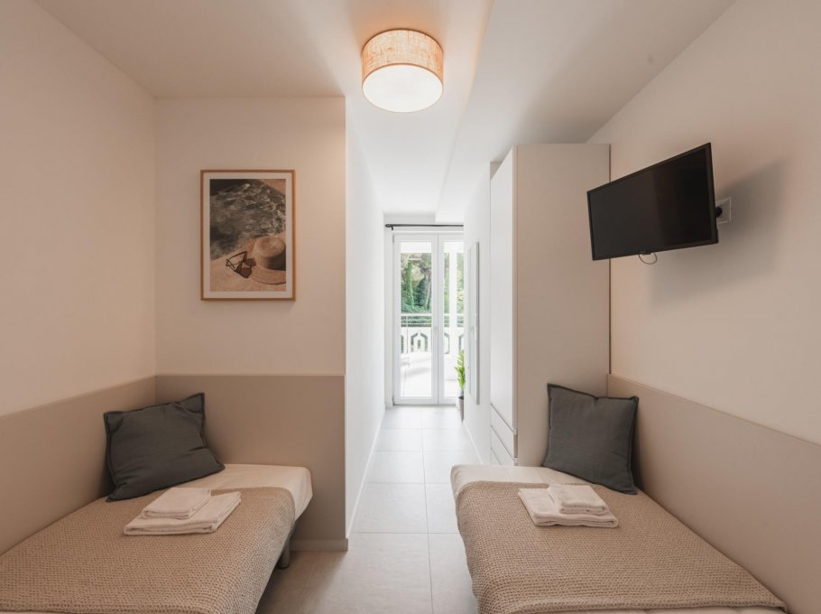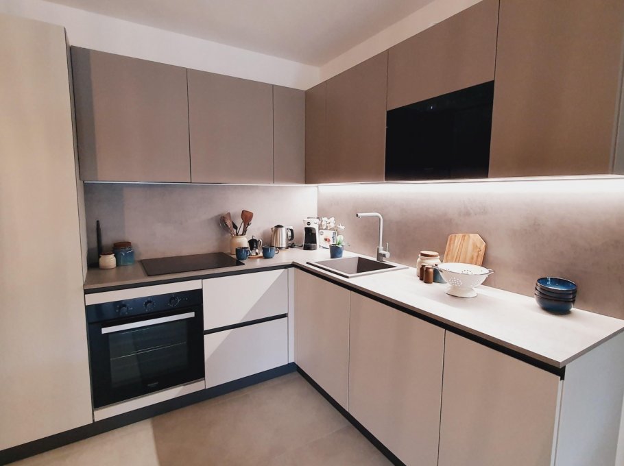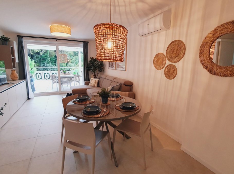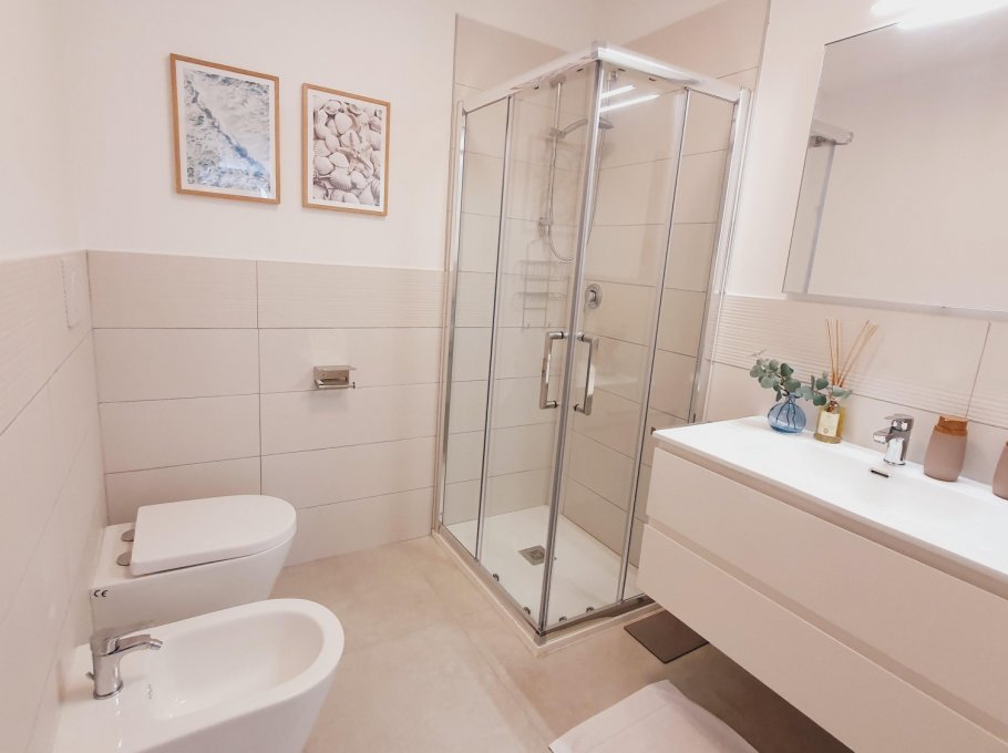 The apartment is located in the Millefiori residence, a 9-storey building with private parking. It's located just 200 meters from the sea. The apartment is located on the 2nd floor and consists of a bedroom with a double bed, a bedroom with 2 single beds, living room with sofa bed, kitchenette with dishwasher and induction hob, two bathrooms with shower cabin and a large terrace. New apartment with air conditioning, washing machine and TV.