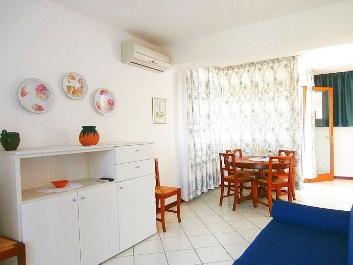 App. 89 -Agenzia Jupiter Lignano Pineta Apartment on the 3rd floor, with very large living room, double sofà bed, small kitchen korner with two induction plates, 2 double rooms, bathroom without window with shower corner, 3 balconies direction Piazza del Sole and one big balcony direction sea. TV, washing machine, electricity to charge separately , safe.