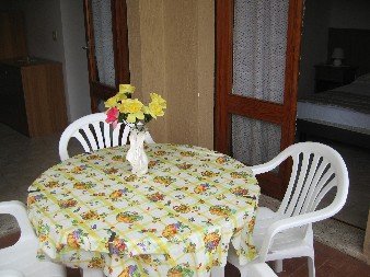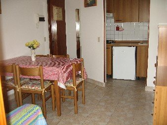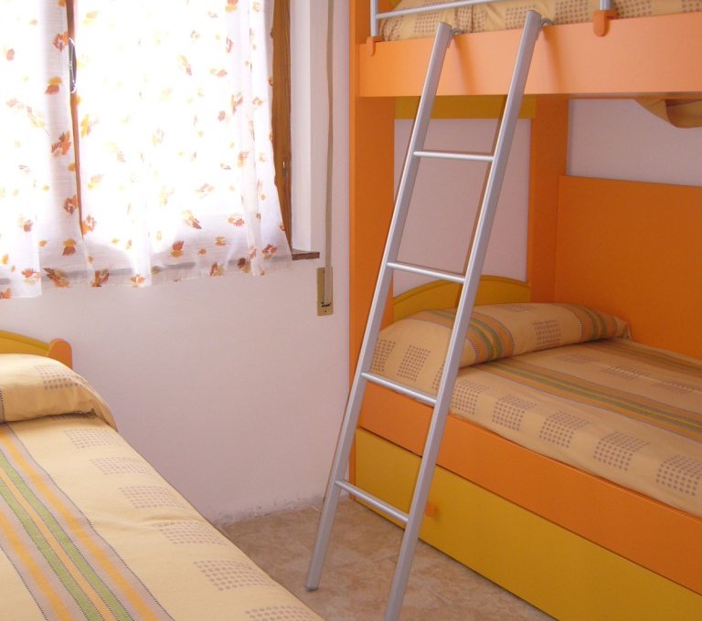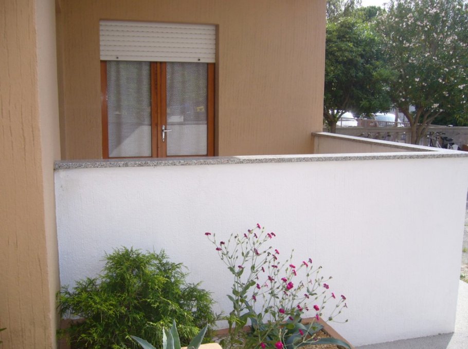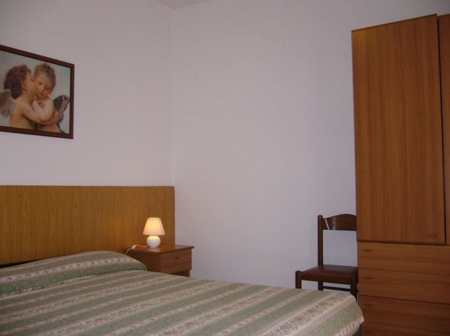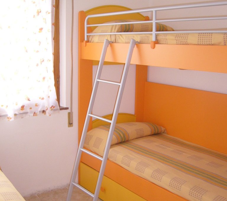 Handy apartment on the mezzanine floor, so composed:a bed-room with a double bed, a bed-room with a bunk bed and a single bed, living room with a divan and cooking area, bath-room with shower, great terrace,possibility to park in the common garden.