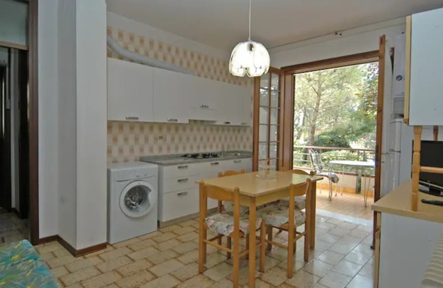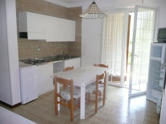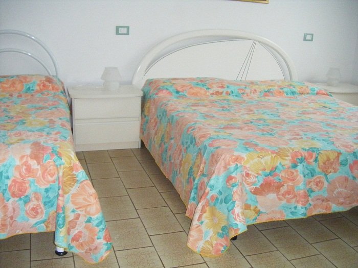 5 persone, 1 camera con 1 letto singolo e uno matrimoniale, soggiorno con divano letto doppio e angolo cottura, 1 bagno con doccia, finestrato, grande terrazzo, frigo con congelatore, tv, wi. fi., aria condizionata, lavatrice, microonde, parcheggio numerato, giardino, 350 mt dal mare.