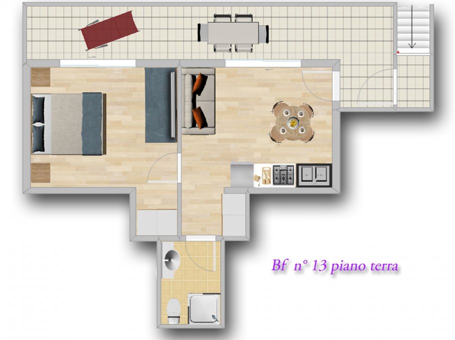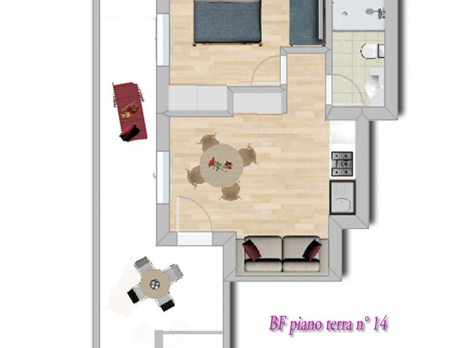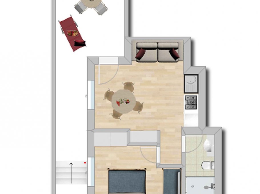 Резиденция Ноумеа, номер 2-х комнатный, обновленный. На первый этаже. В номере: спальня с двуспальной и односпальной кроватями; гостиная-кухня с диван-кроватью на две персоны; ванная комната без окна с душевой кабиной. Большая терраса-балкон с видом на море.
