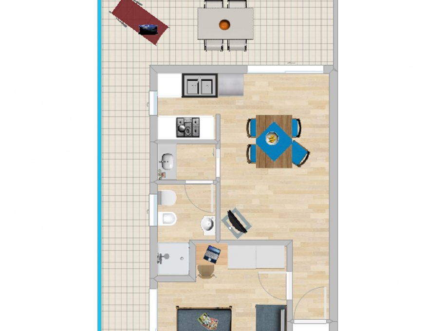 Резиденция Ноумеа, Новый 2-х комнатный номер на втором этаже. Имеется лифт. В номере: спальня с двуспальной и односпальной кроватями; гостиная с диван-кроватью на две персоны; кухня с посудомоечной машиной. Ванная комната с окном, душевой кабиной и биде. Большая терраса-балкон с видом на море.