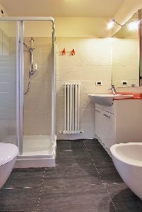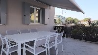Elegant and luxurious flat on the ground floor composed of: large living room with double sofa bed with direct access to the comfortable and large terrace equipped with table + chairs and gazebo, kitchenette, large bathroom with shower box, double bedroom + third bed and private bathroom with shower box, bedroom with 2 separate beds, (4/6 beds).