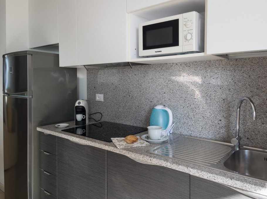The apartments located on the 5., 6., and 7. floor have modern, elegant and detailed furniture and are equipped also with espresso coffee machine Lavazza A Modo Mio®, dishwasher and washing-machine.