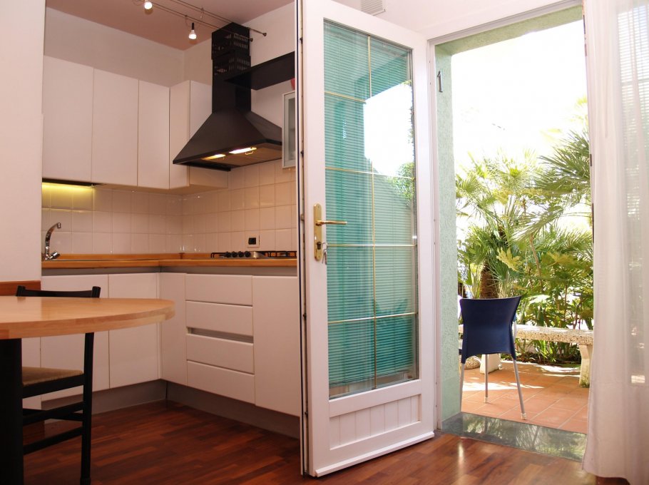 1. Two-room apartment on the ground floor with outdoor patio overlooking the garden.