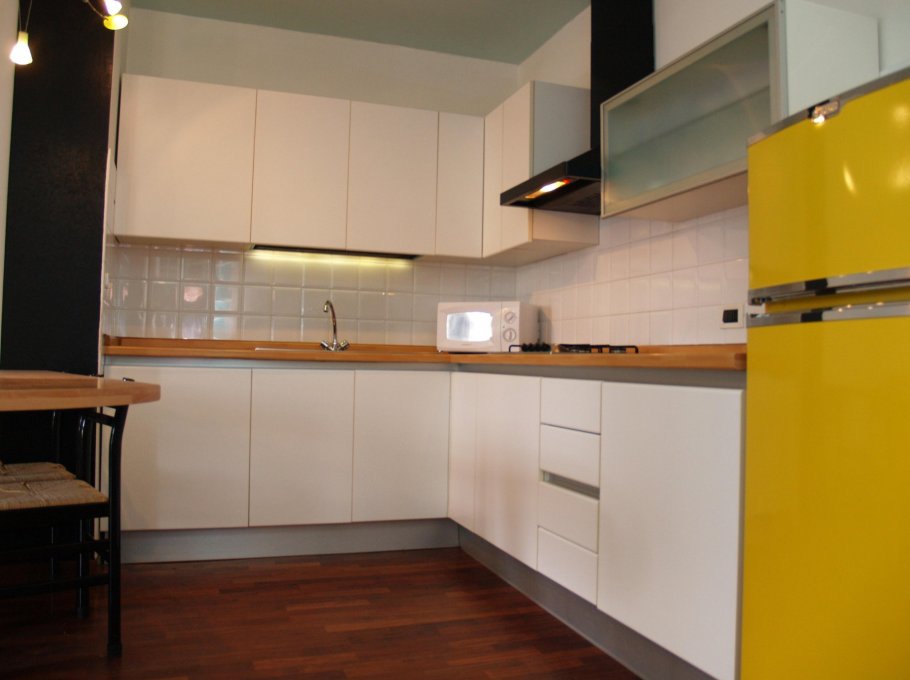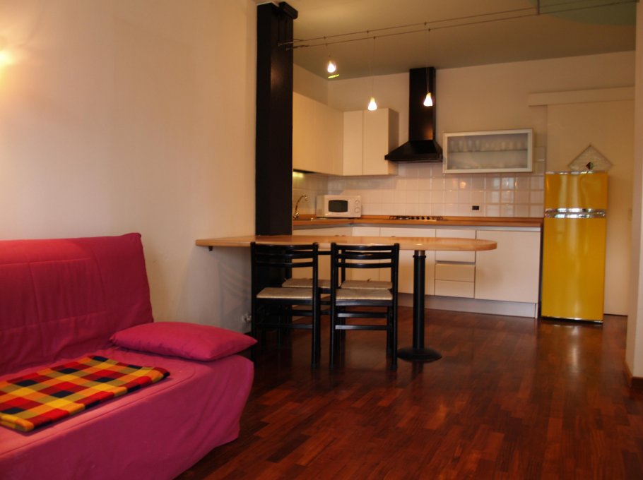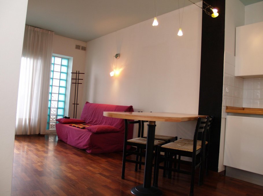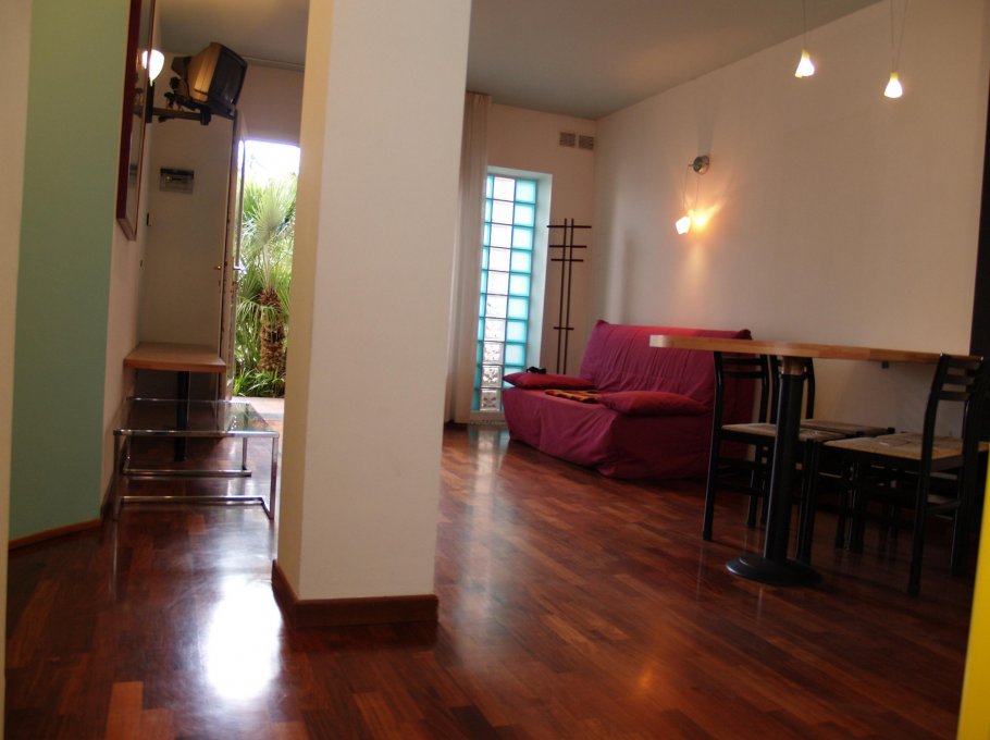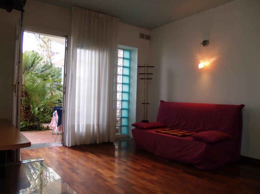 Composed of: living/dining room with kitchenette and 1 French sofa bed. Room with built-in wardrobe. Double bedroom + 1 single bed, equipped with French window opening onto a fenced common zone.