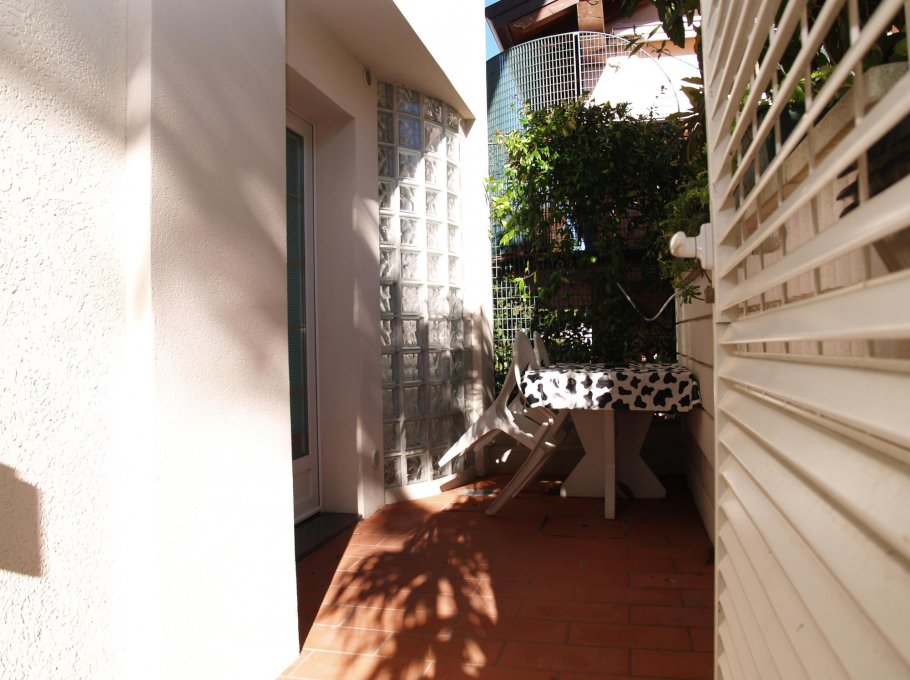 7. The apartment is a maxi studio on the ground floor with fenced outdoor patio.