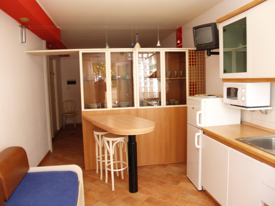 Composed of: dining room with kitchenette and 1 sofa bed. Zone day/night separated by a bridge wardrobe. Sleeping area with double bed + 1 single bed. Comfortable bathroom with shower cabin.