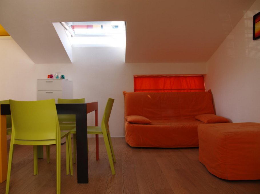 Composed of: living/dining room with kitchenette and 1 French sofa bed. The electrical roof windows allows the choice of light/darkening and ventilation in the two areas of the apartment.