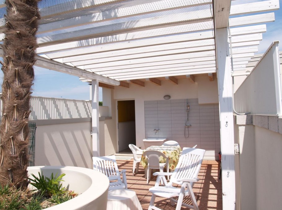 An outdoor shower with hot/cold water will make you enjoy new sensations! Furnished with 2 reclining sun chairs, table and chairs.