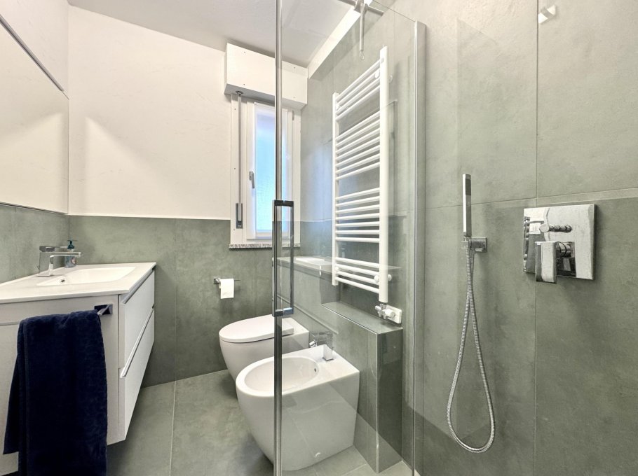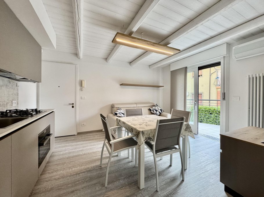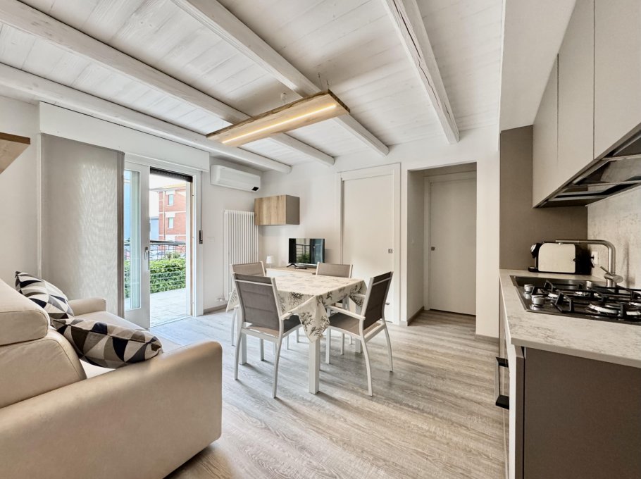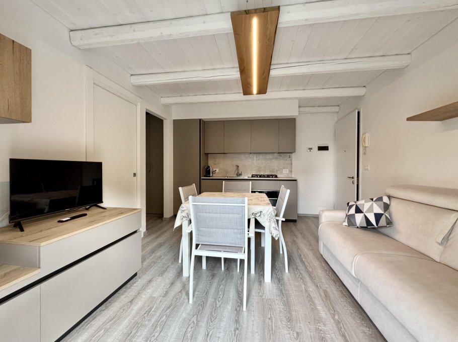 Modern and elegant flat on the mezzanine floor consisting of living room with sofa bed for two persons, kitchenette-corner, bedroom with double bed, bathroom with shower box, terrace. With air conditioning, washing machine and dishwasher. CIN CODE: IT030049C2GYZU5CV9