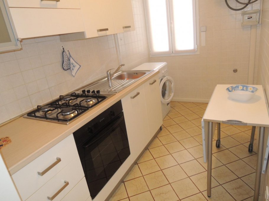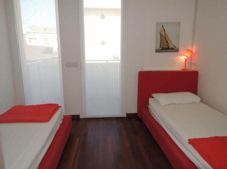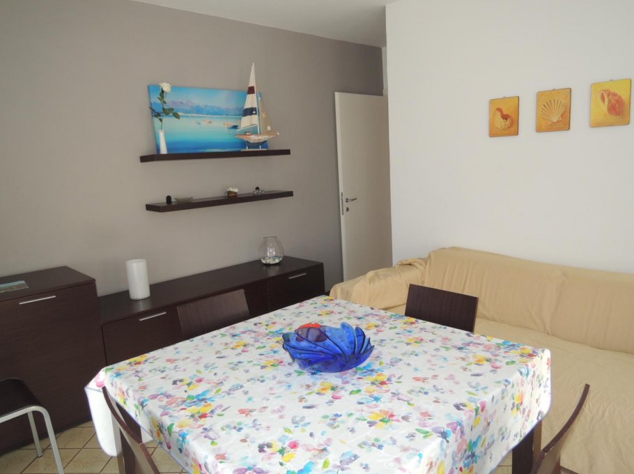 Roomy and renewed apartment on the 2nd floor, in the centre of Sabbiadoro, 150 meters far from the beach, with 1 double bedroom and 1 bedroom with 2 beds, kitchen, living-room with sofa, bathroom with shower, 2 balconies with view on the main-street, air conditioned, washing machine, tv and parking place