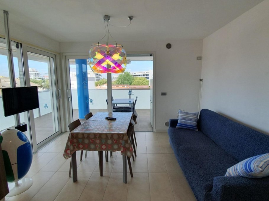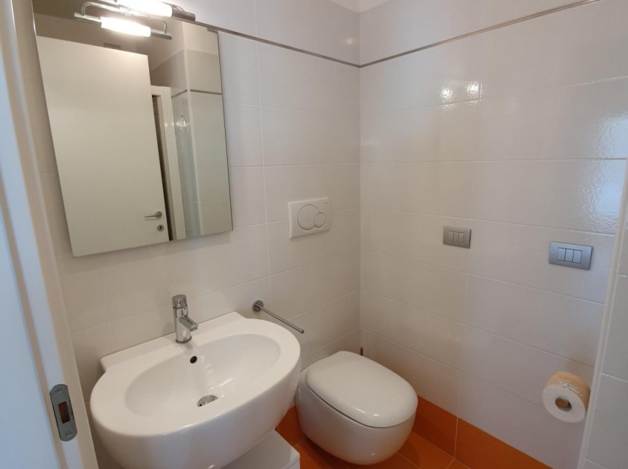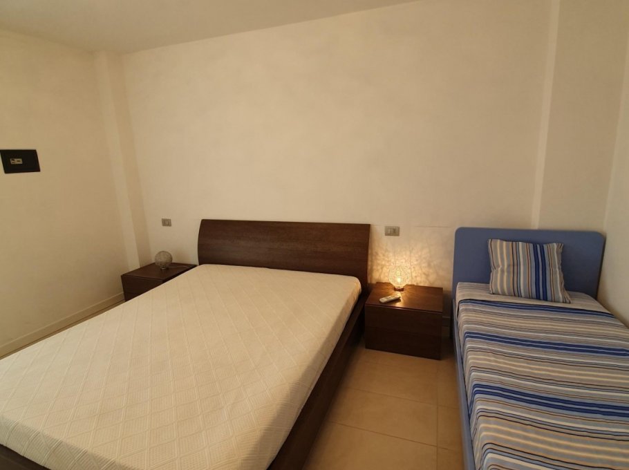 Stella d’Oriente has been developed over six floors served by a lift, each floor having two apartments completely separated by a landing. Type C: 4/5 persons - The apartment is on the 3° floor. New apartment with quality finishes. The sleeping area consists of a double bedroom with patio door, a bedroom with two single beds, bathroom with shower cubicle and door-window, 2nd bathroom with shower cubicle. Living area with living room / dining room with sofa bed, television and opens with a double sliding glass door to the terrace to "L". Equipped with table and chairs is also easily accessible from the sleeping area. The kitchenette is equipped with refrigerator from 240 lt (separate freezer), dishwasher and microwave.