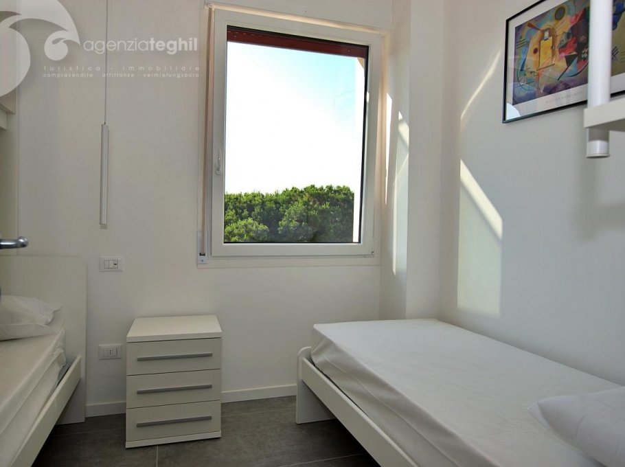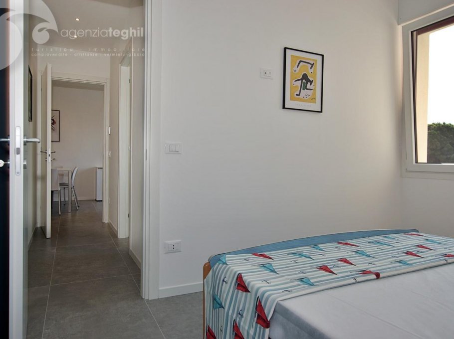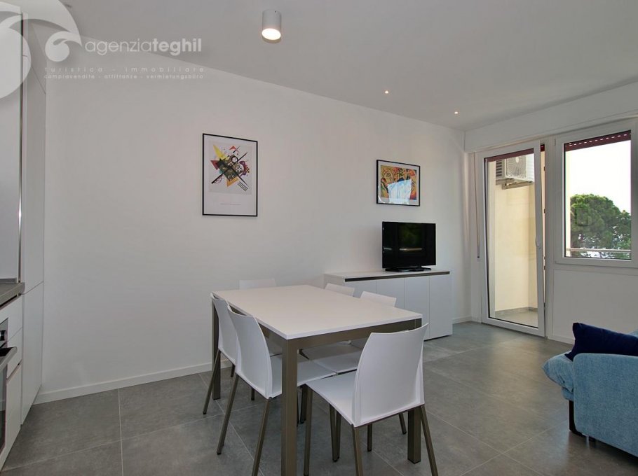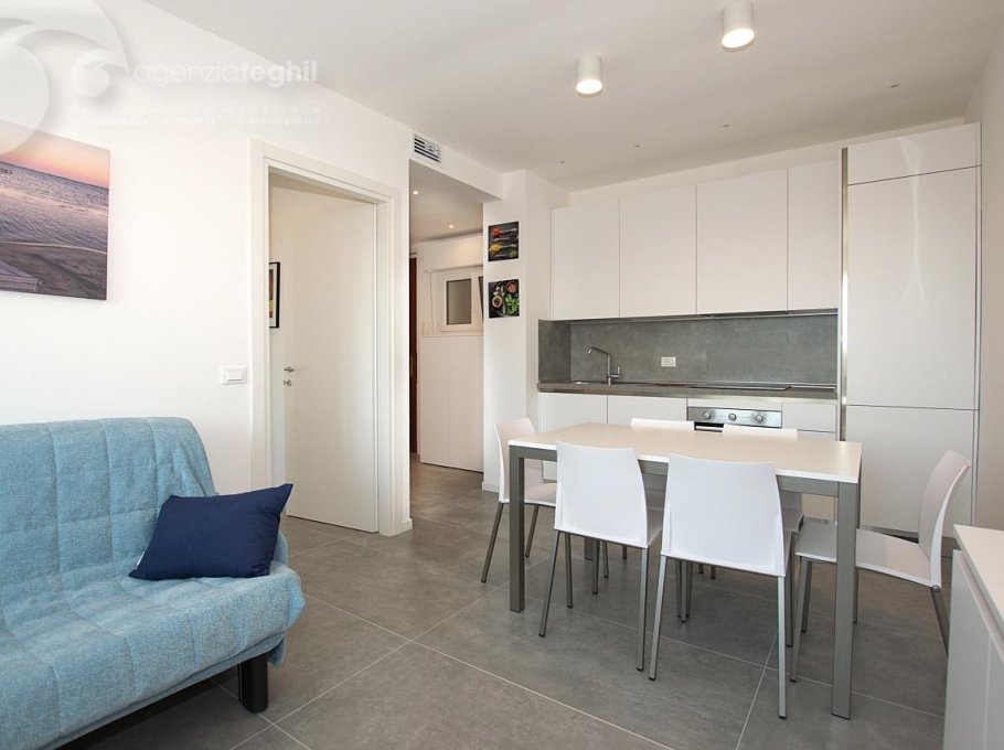 Type C: 4/5 people - Fully renovated apartment on the 2nd floor (elevator), consisting of a double bedroom; a bedroom with two single beds; a living room with a double sofa bed, a television (only Italian programs), and a small terrace furnished with a table and chairs; a kitchenette with an induction hob, a microwave oven, and a 240-liter double-door refrigerator; and a bathroom with a window and a walk-in shower.