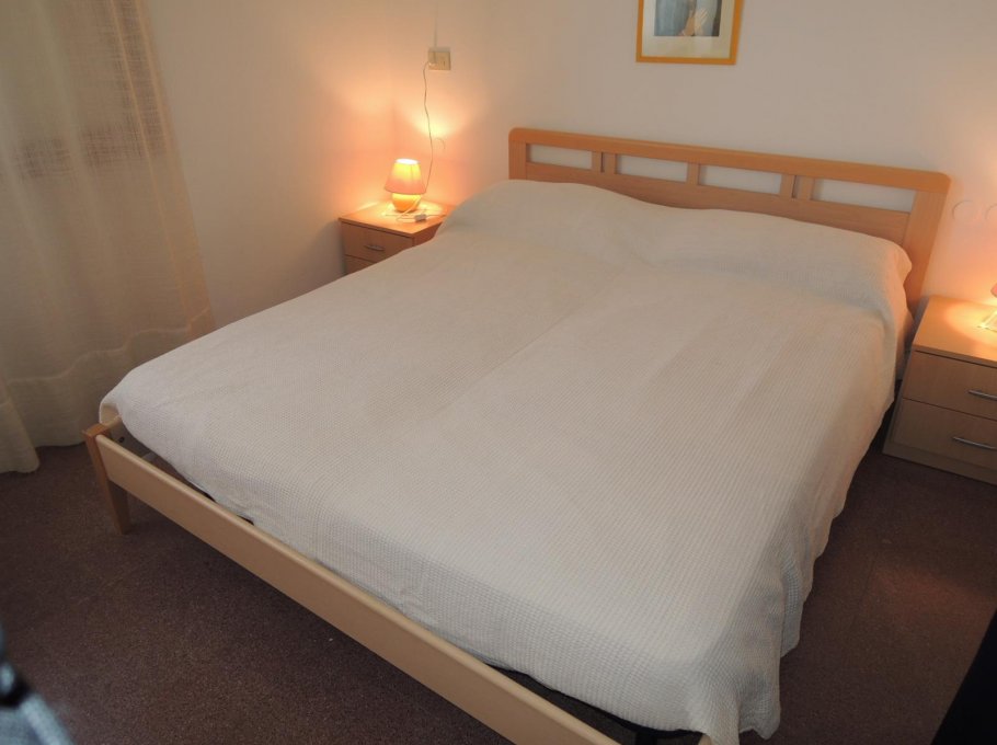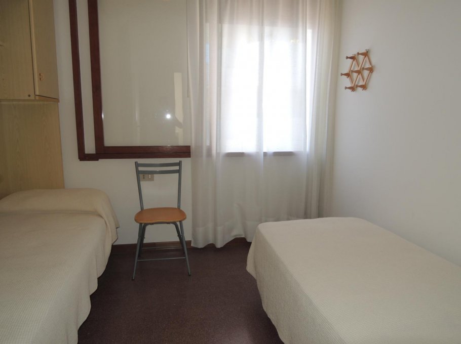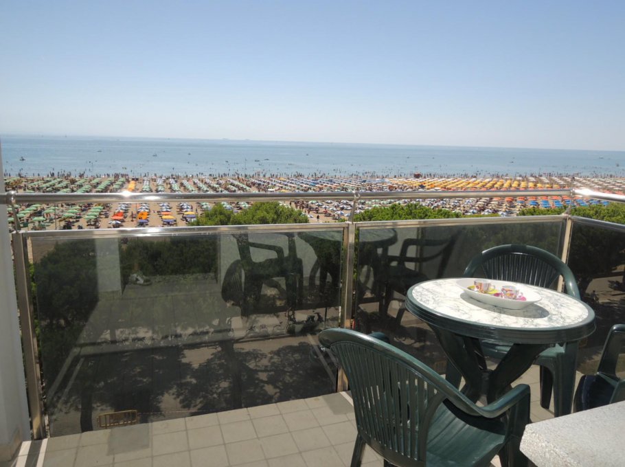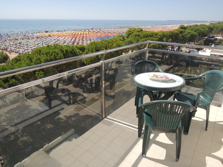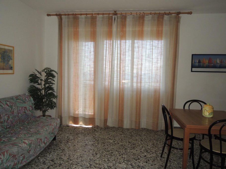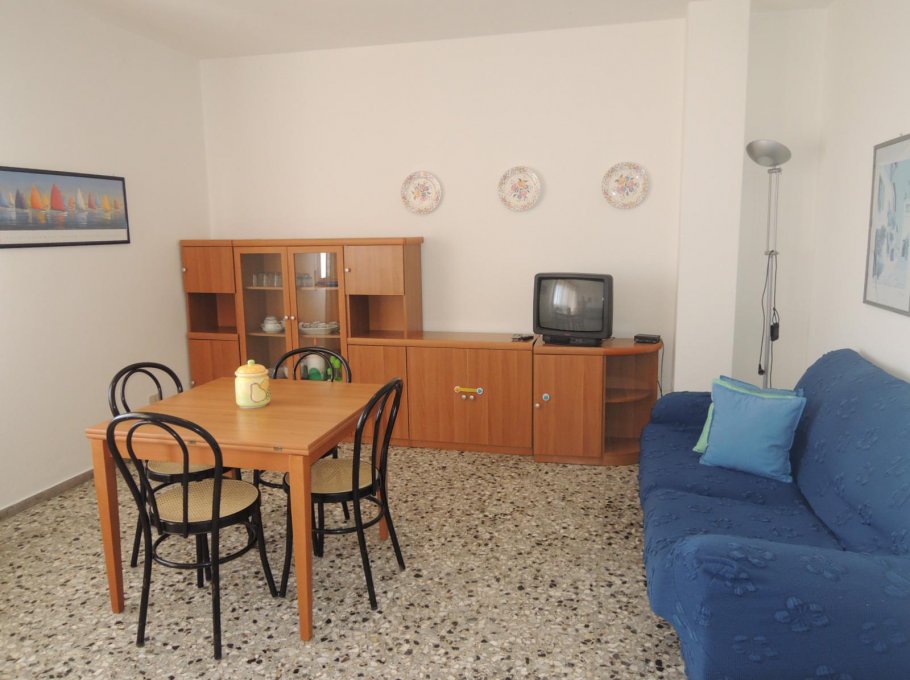 Apartment on the 4th floor (with elevator) with balcony with beautiful wiev on the sea; it has 1 double bedroom, 1 bedroom with 2 single bed, roomy living-room with 2 sofa-bed, bathroom with box shower.