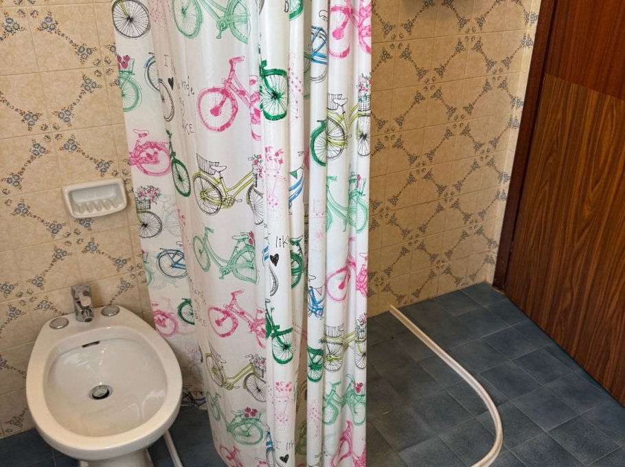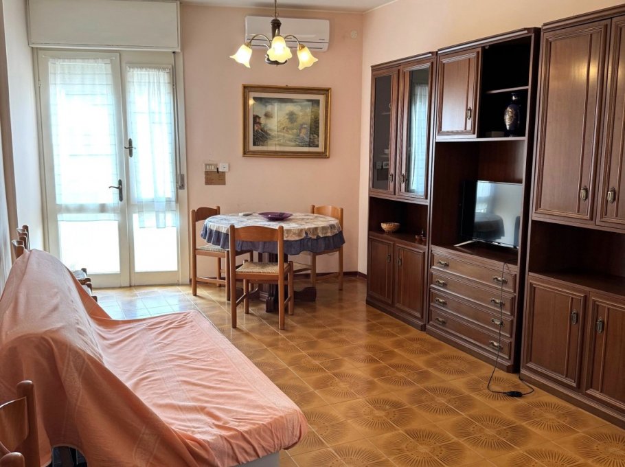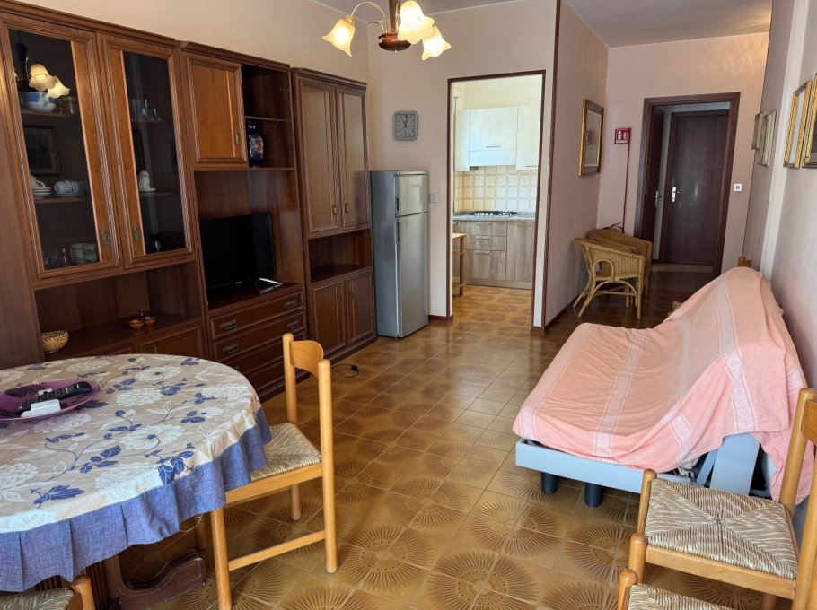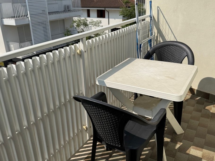 Roomy apartment on the 2nd floor, in the centre of Sabbiadoro, with balcony with wiev on the main street, kitchen, living-room with sofa-bed, bathroom, bedroom with 3 beds on the back side (so it’s quiet!). With tv.