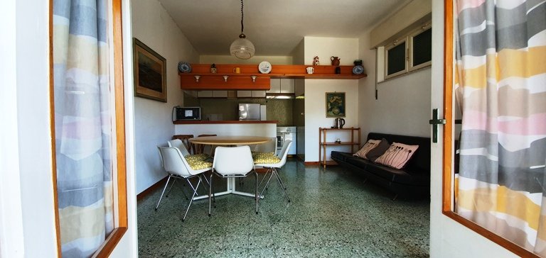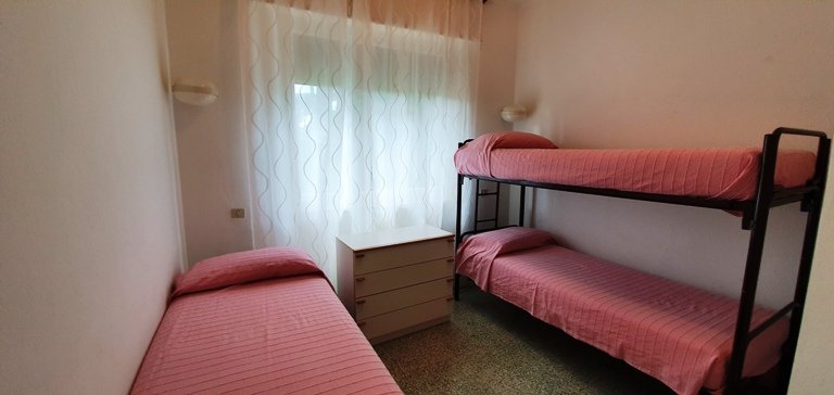 flat on the ground floor in an apartment-house (4 flats in total), in a very calm place. The apartment has a livingroom with kitchenette, balcony, 1 bedroom with double bed, 1 bedroom with 1 single bed and a bunk bed, shower/toilet, parking area.