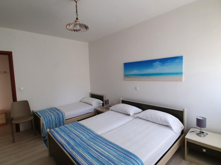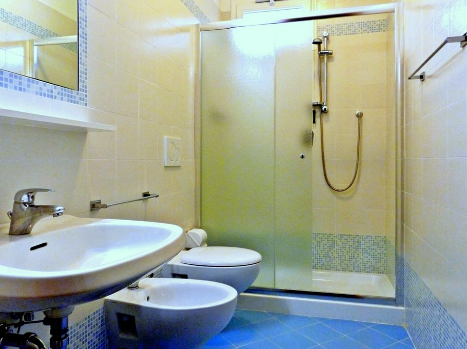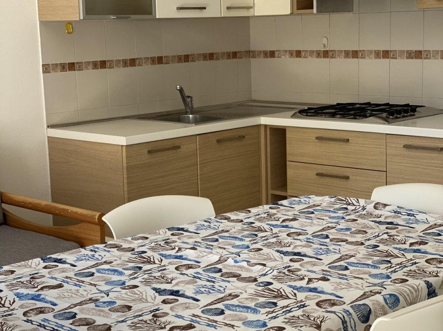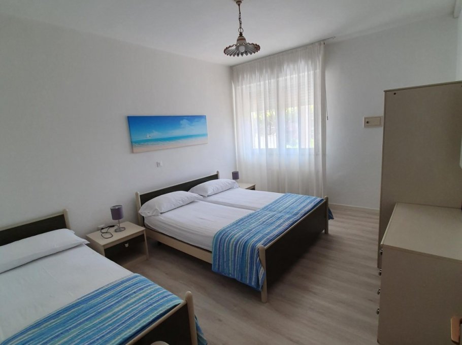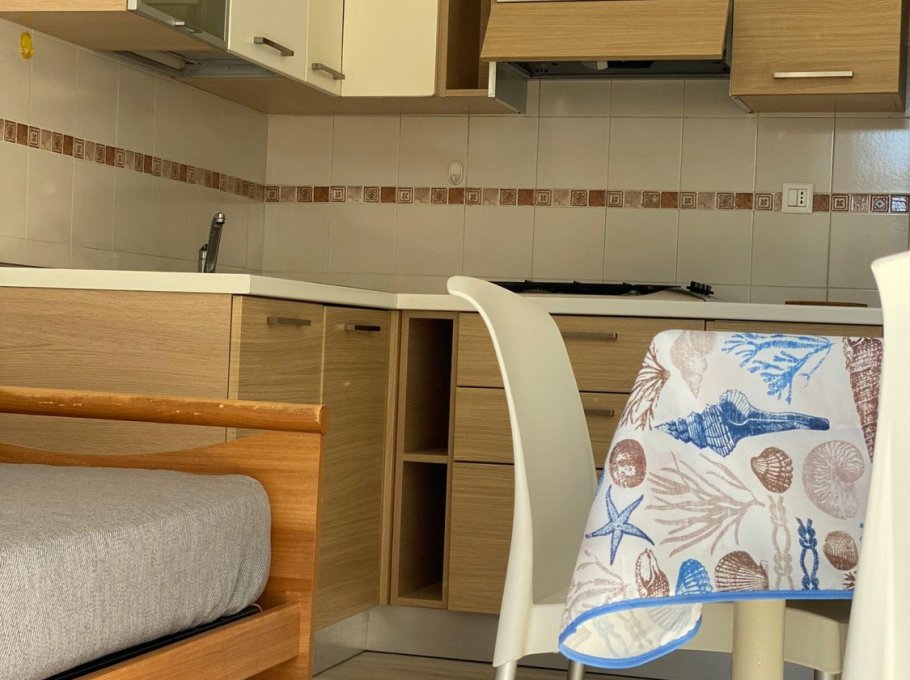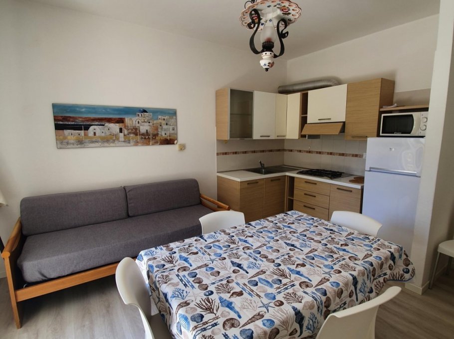 Type B - 3/5 persons - Apartment on ground floor, composed of a bedroom with three beds, windowed bathroom with shower cubicle, living room with sofa bed, television with satellite connection, a kitchenette with refrigerator from 240 lt (separate freezer). Terrace and little portion of garden with table and chairs.
