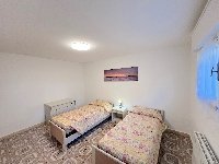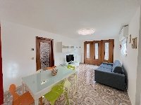 Ground floor flat composed of: large living room with double sofa bed and access to a terrace, separate kitchenette, 1 double bedroom, 1 bedroom with 2 separate beds, 1 bathroom with window and shower box, (4/6 beds).