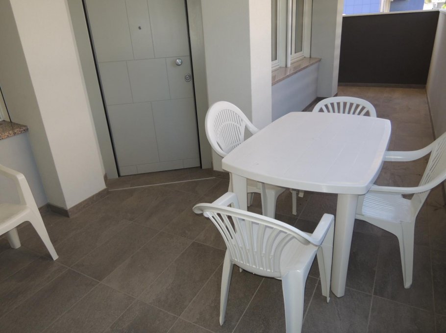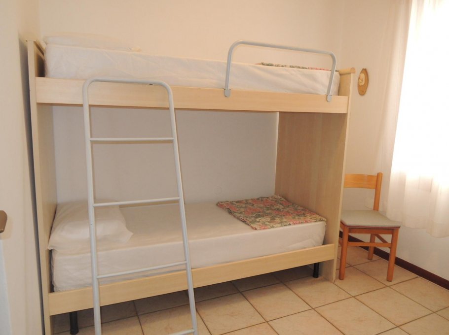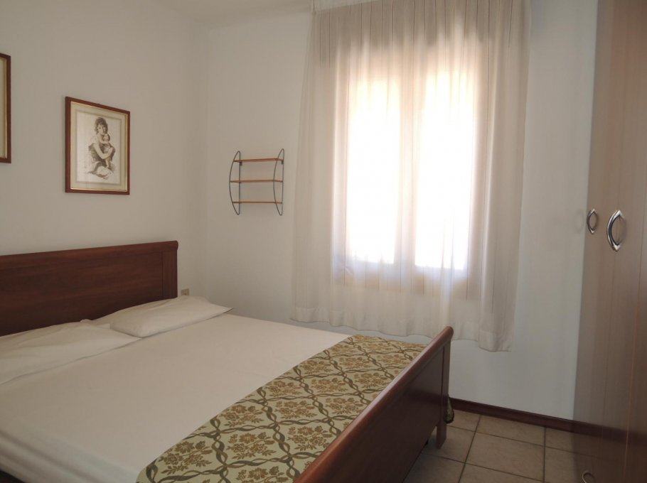 Spacious apartment on the first floor, composed of a double bedroom, a bedroom with bunk bed, living room with kitchenette and sofa bed, bathroom with window and boxshower and large terrace with independent entrance. With air conditioning and numbered parking space in the courtyard. Animals are not allowed.