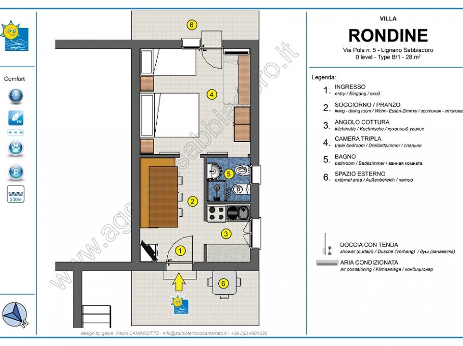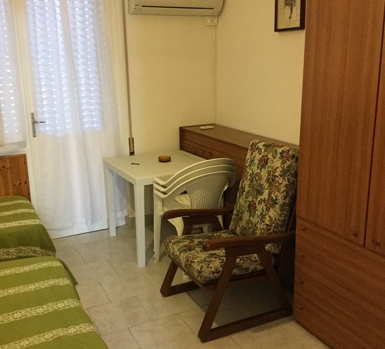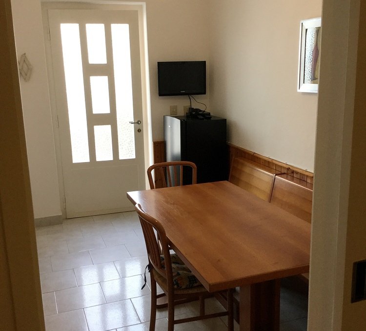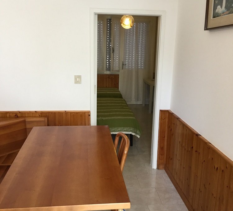 (max 4 Personen): Wohnung im Erdgeschoss, Wohnzimmer mit TV, Esstisch und Kühlschrank, Küchenzeile, ein Dreibettzimmer mit einem Doppelbett und ein Einzelbett, Französisch Türen, die auf den Hinterhof Zugang auf der Rückseite, Bad mit Dusche (ohne Duschtasse und mit Zelt) -wc-Bidet. Die Wohnung ist auch mit Klimaanlage (auf Anfrage € 35,00 pro Woche), und Außenraum ausgestattet.