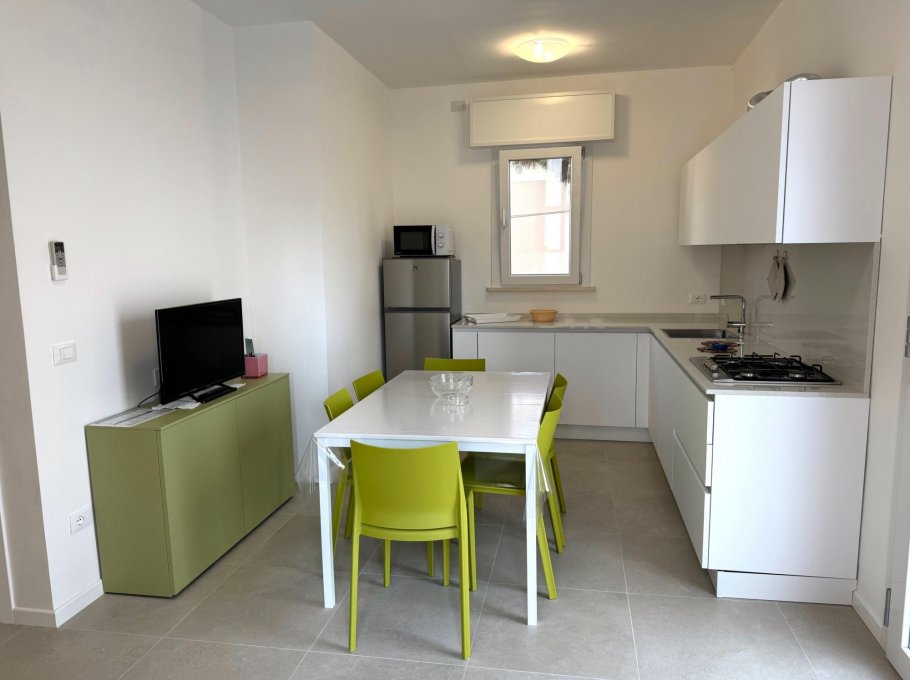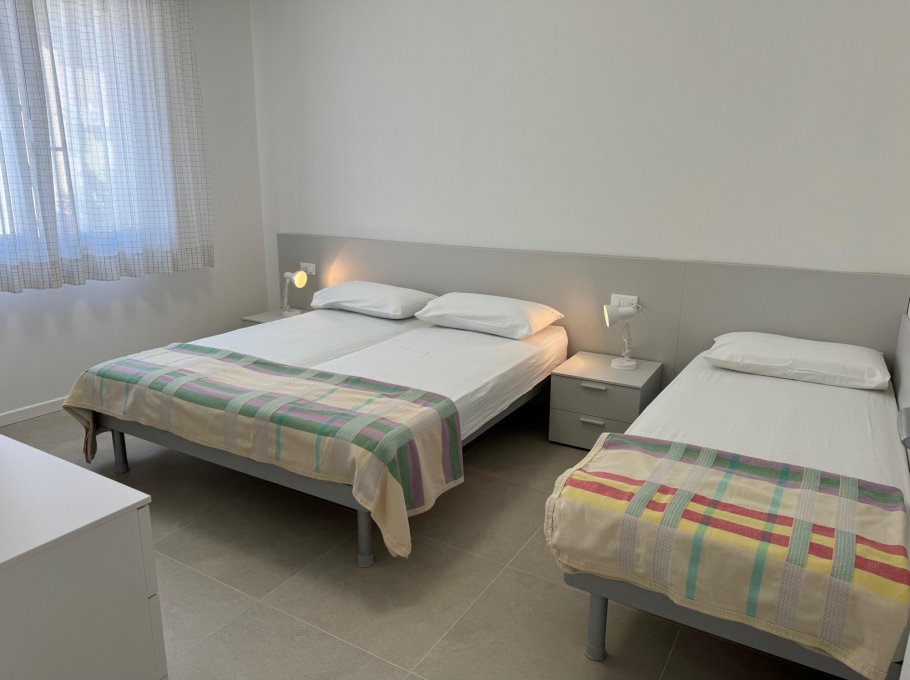 Completely renovated and very comfortable apartment, with redesigned spaces to make your stay live up to your expectations. It is on the 1st floor and It is composed of a double bedroom, a bedroom with three beds, a living room with kitchenette, a bathroom with box shower and a large private terrace; there is also a washing machine, microwave oven, dishwasher, air conditioning, wi-fi and private parking space. There are mosquito nets on the windows.