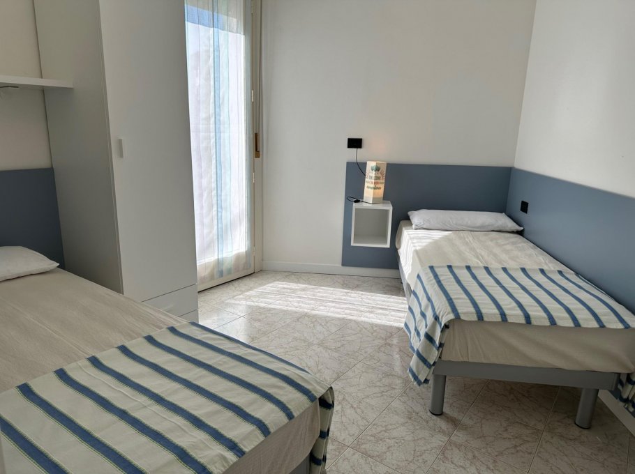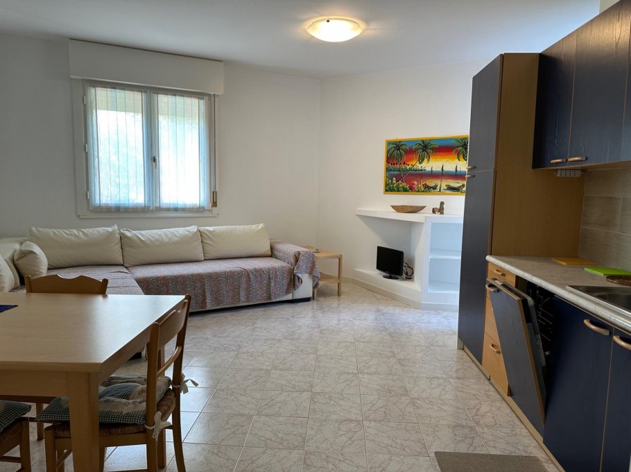 Roomy and very comfortable apartment in a small building on the ground floor with open space for exclusive use; it is made up of a bedroom with a double bed and a single bed, a bedroom with two beds, a living room with a kitchen, a bathroom with box shower and a window. It also has air conditioning, washing machine, dishwasher, numbered parking space inside the building. It is located in a quiet street in the center of Sabbiadoro, 300 meters from the sea.
