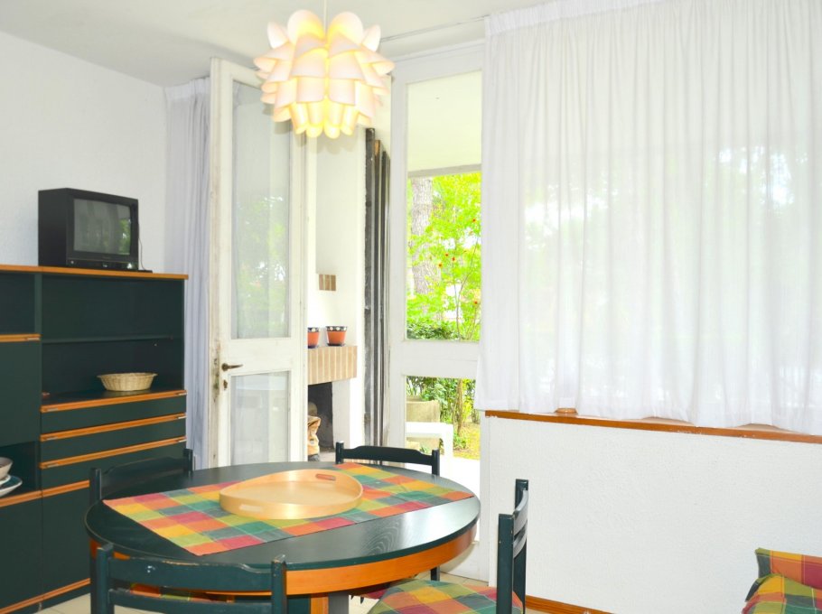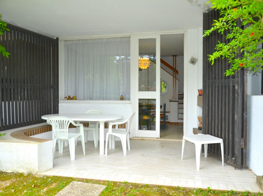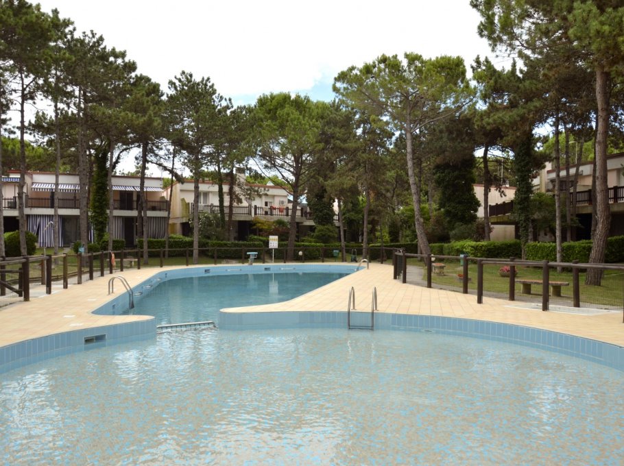 Row houses village surrounded by a green pine wood in Lignano Pineta, with swimming pool for adults and children, about 800 meters from the beach, with garage and little private garden.