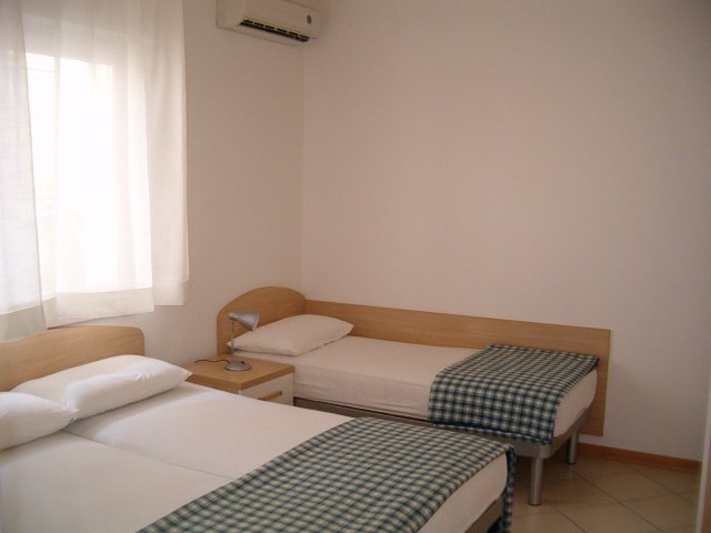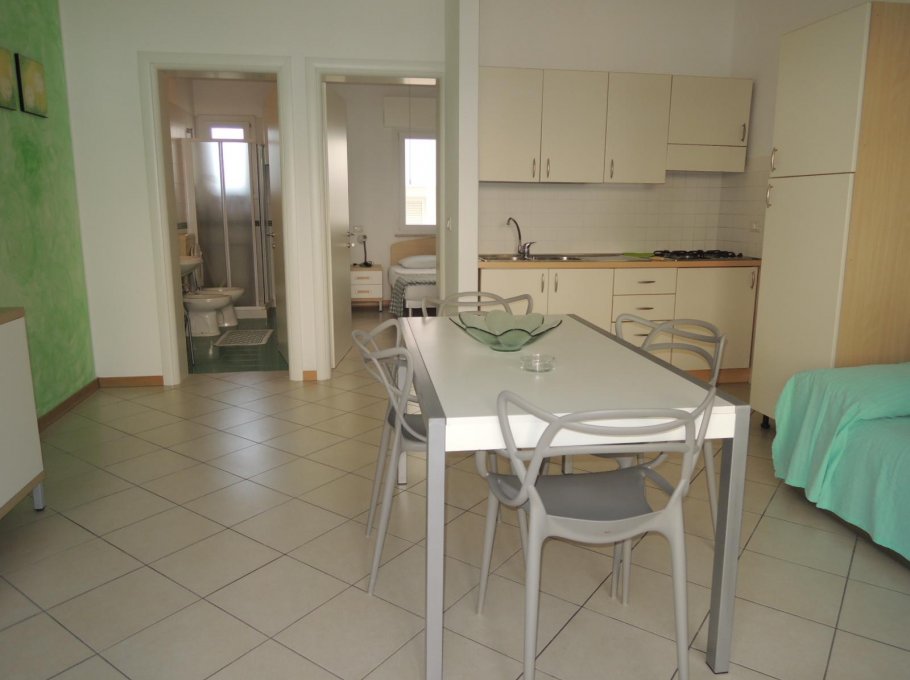2 buildings with 13 roomy one/two-room apartments (all together) with big balconies and private parking lots, in a quiet area in Sabbiadoro, 150 meter away to the beach; FRONT SIDE (via Adriatica): complete new (since 2006), comfortable and bright, with air conditioned, sat-TV, safe, washing machine and big balcony; all the bathrooms with box shower; BACK SIDE: 3 apartments (one each floor) with 2 bedrooms each, very big terrace or garden on the ground floor,air conditioned, safe, sat-tv, washing machine; all the bathrooms are with box shower, and 4 apartments (2 each floor) with 1 bedroom each (max 3 persons), with air conditioned, safe, sat-tv and bathroom with box shower.