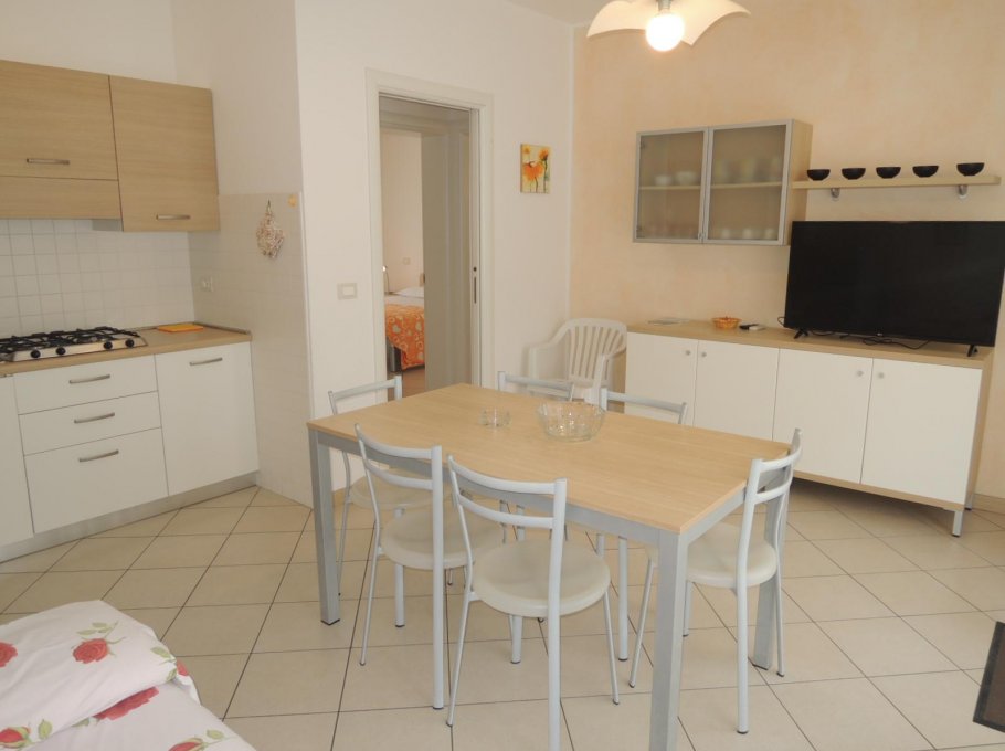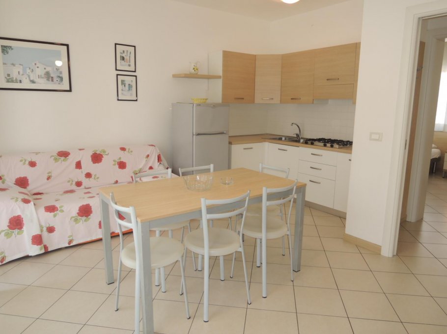 2 buildings with 13 roomy one/two-room apartments (all together) with big balconies and private parking lots, in a quiet area in Sabbiadoro, 150 meter away to the beach; FRONT SIDE (via Adriatica): complete new (since 2006), comfortable and bright, with air conditioned, sat-TV, safe, washing machine and big balcony; all the bathrooms with box shower; BACK SIDE: 3 apartments (one each floor) with 2 bedrooms each, very big terrace or garden on the ground floor,air conditioned, safe, sat-tv, washing machine; all the bathrooms are with box shower, and 4 apartments (2 each floor) with 1 bedroom each (max 3 persons), with air conditioned, safe, sat-tv and bathroom with box shower.